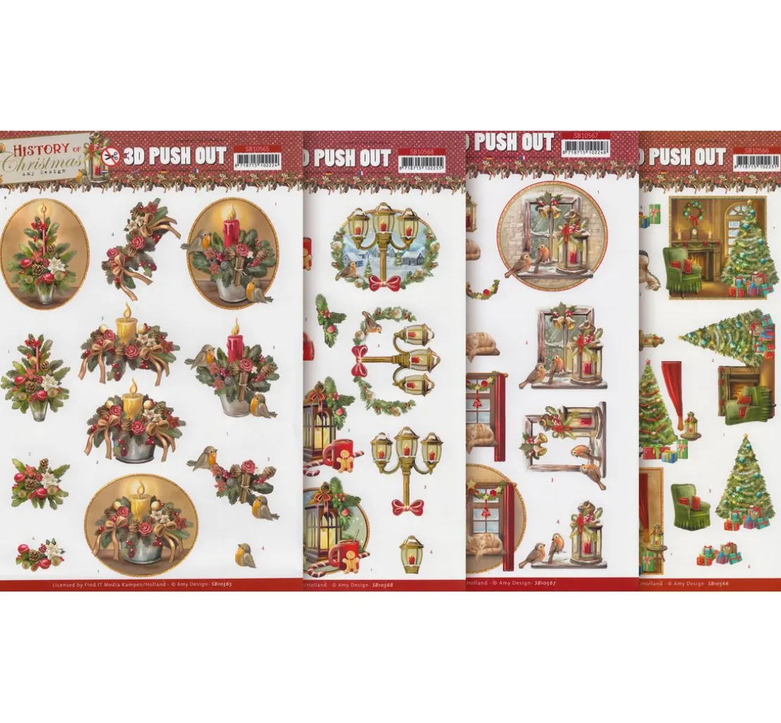 Mit diesem 3D-Stanzbogen-Set „History of Christmas“ lassen sich kreative Bastelarbeiten umsetzen. Es handelt sich um vorgestanztes Papier im DIN A4 Format rund um weihnachtliche Szenen. Es sind 4 Blatt enthalten.