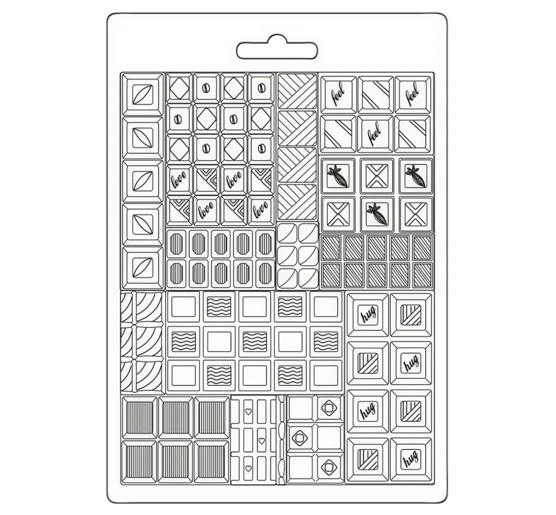 Mit der 3D-Texturform kannst du 15 verschiedene Motive gestalten. Das Motiv zeigt verschiedene Schokoladentafeln, die du ganz nach deinem Wunsch gestalten kannst. Du kannst die 3D-Texturform mit verschiedenen Materialien nutzen wie z.B. Raysin oder 3D – Strukturpaste. Deine Kunstwerke kannst du anschließend bemalen oder bekleben, um sie zu einem echten Unikat zu machen.