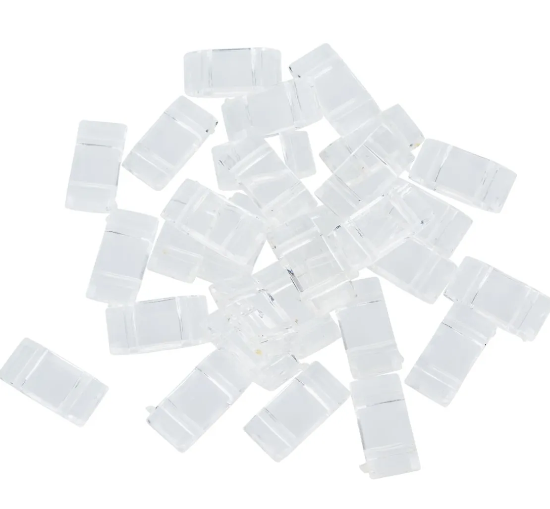 Acryl 2-Loch-Trägerperlen, Inhalt 100 Stück aus Kunststoff mit einer Größe von Länge 18 mm, Breite 8,6 mm und Stärke 5 mm. Die Lochgröße beträgt 1,8 mm.