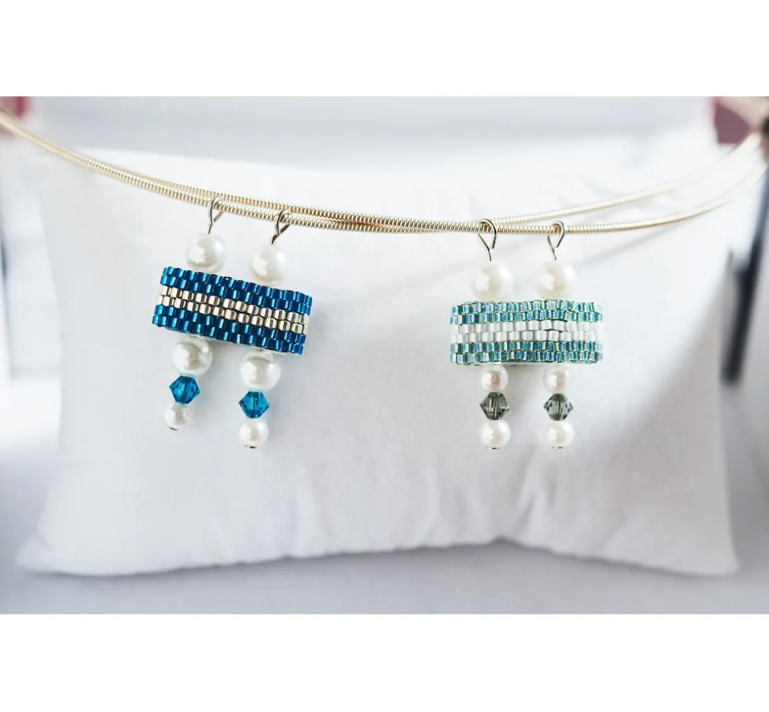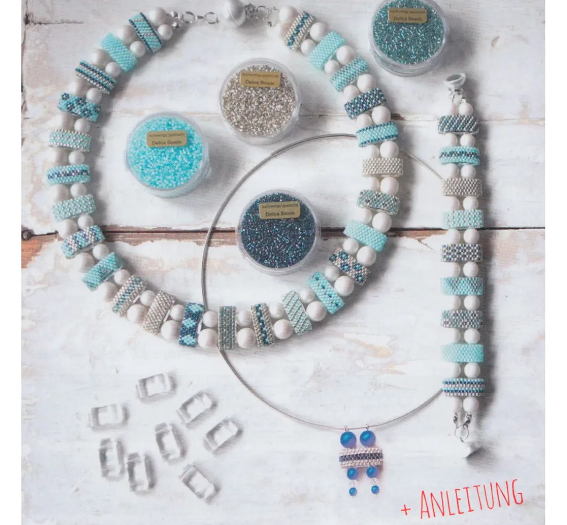 Diese Trägerperlen sind aus transparentem Acryl und mit 2 Löchern ausgestattet. Sie werden als Träger für die Peyote Technik aus Rocailles verwendet, die um diese Trägerperle gelegt und geschlossen werden. So bekommen Sie eine ovale Perle. Nun können die Trägerperlen zu einer Kette oder einem Armband verbunden werden. Auch ungewöhnliche Kettenanhänger können so hergestellt werden.