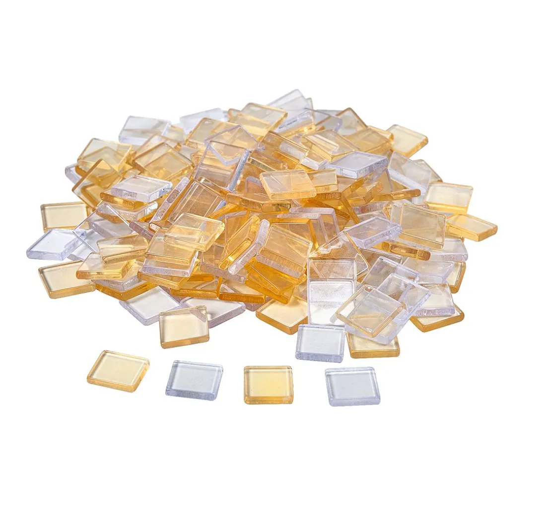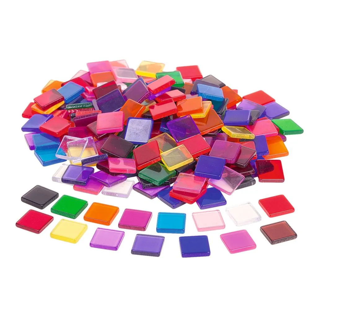 Acryl-Mosaik-Steinchen können mit der Schere geschnitten werden. Es besteht aus hochwertigem, transparenten Kunststoff. Eine Packung reicht für eine Fläche von ca. 17 x 17 cm. Ideal für Leuchtobjekte und andere Dekorationen geeignet. Nicht scharfkantig.