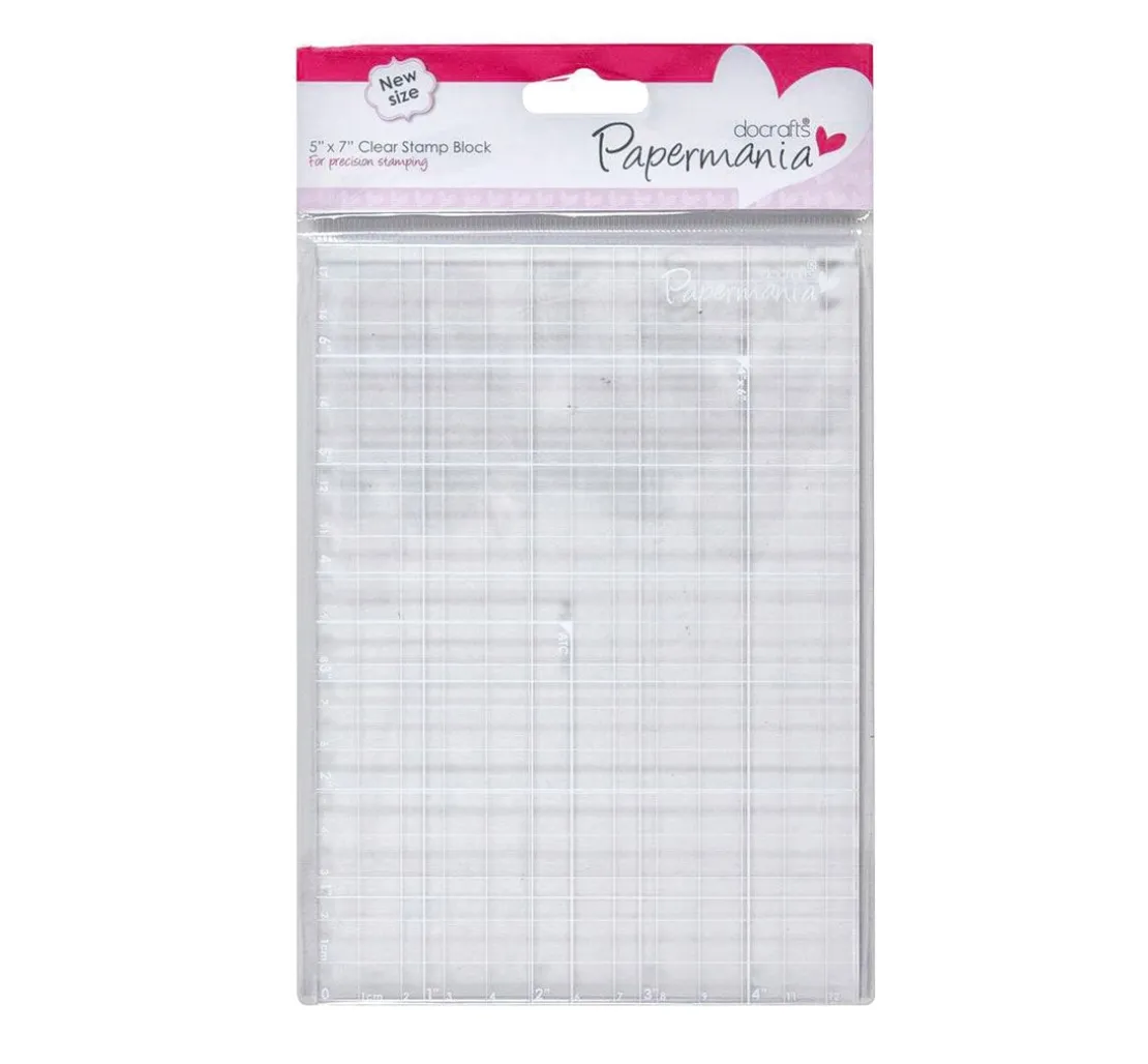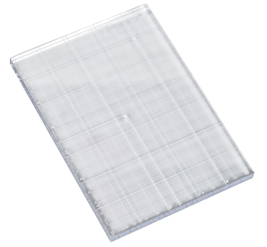 Der Acrylblock, 12,7 x 18 cm ist speziell für die Stempeltechnik mit einem aufgedruckten Hilfsraster ausgestattet.
