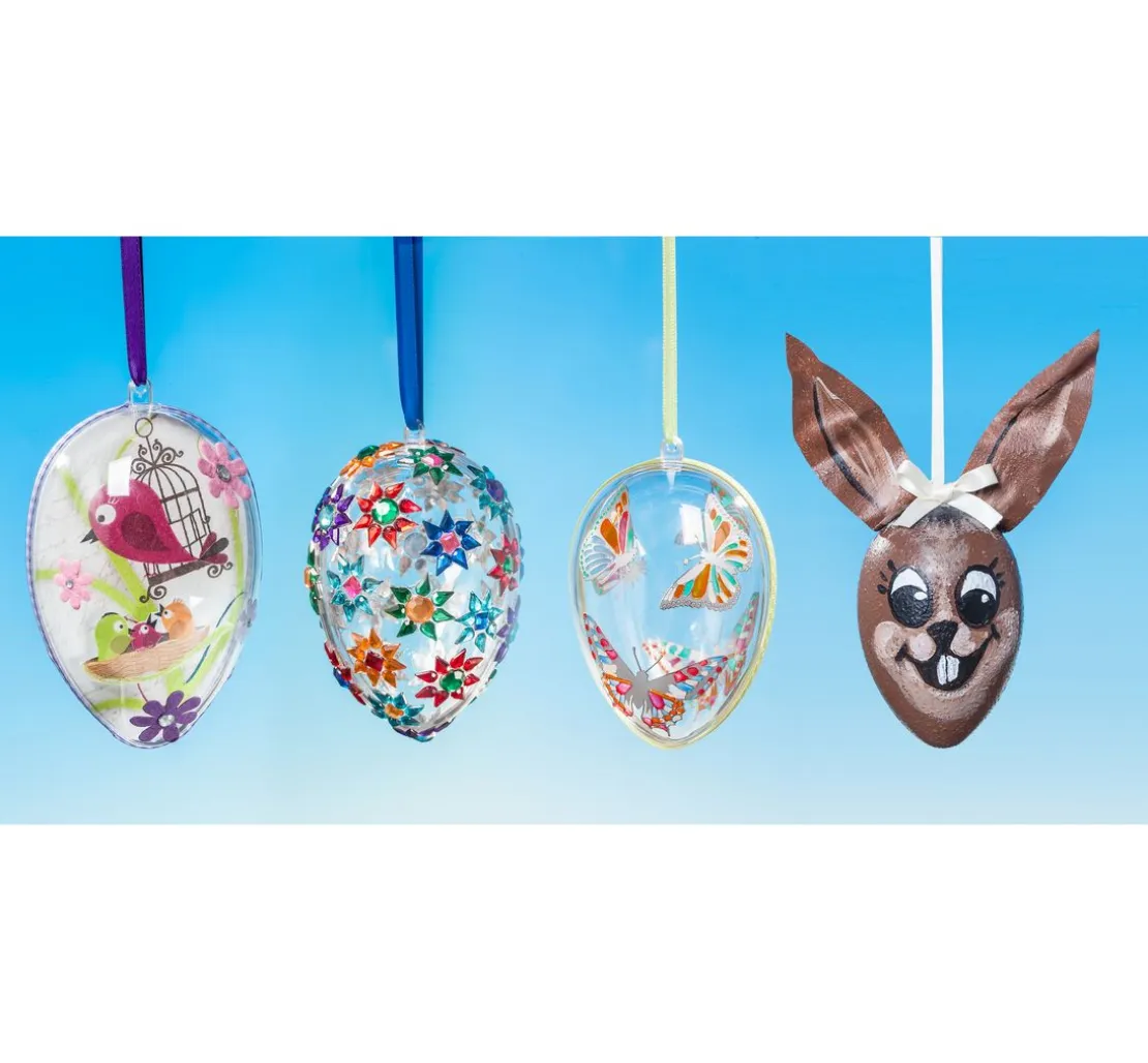 Auf der Oberfläche der Acrylformen haften Kleber, Liner und Strukturpasten. Basteln Sie mit der Serviettentechnik, verzieren Sie mit Schmucksteinen oder malen Sie eigene farbige Motive mit Bastelfarbe. Auch Permanentmarker haften auf dem transparentem Acrylei.