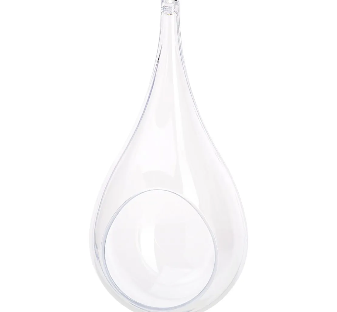 Die teilbare Acryl-Form „Tropfen – Floristik“ ist ca. 18 cm hoch und ist mit einer Öffnung von 5,8 x 6,3 cm versehen und lässt sich mithilfe der Öse einfach aufhängen.
