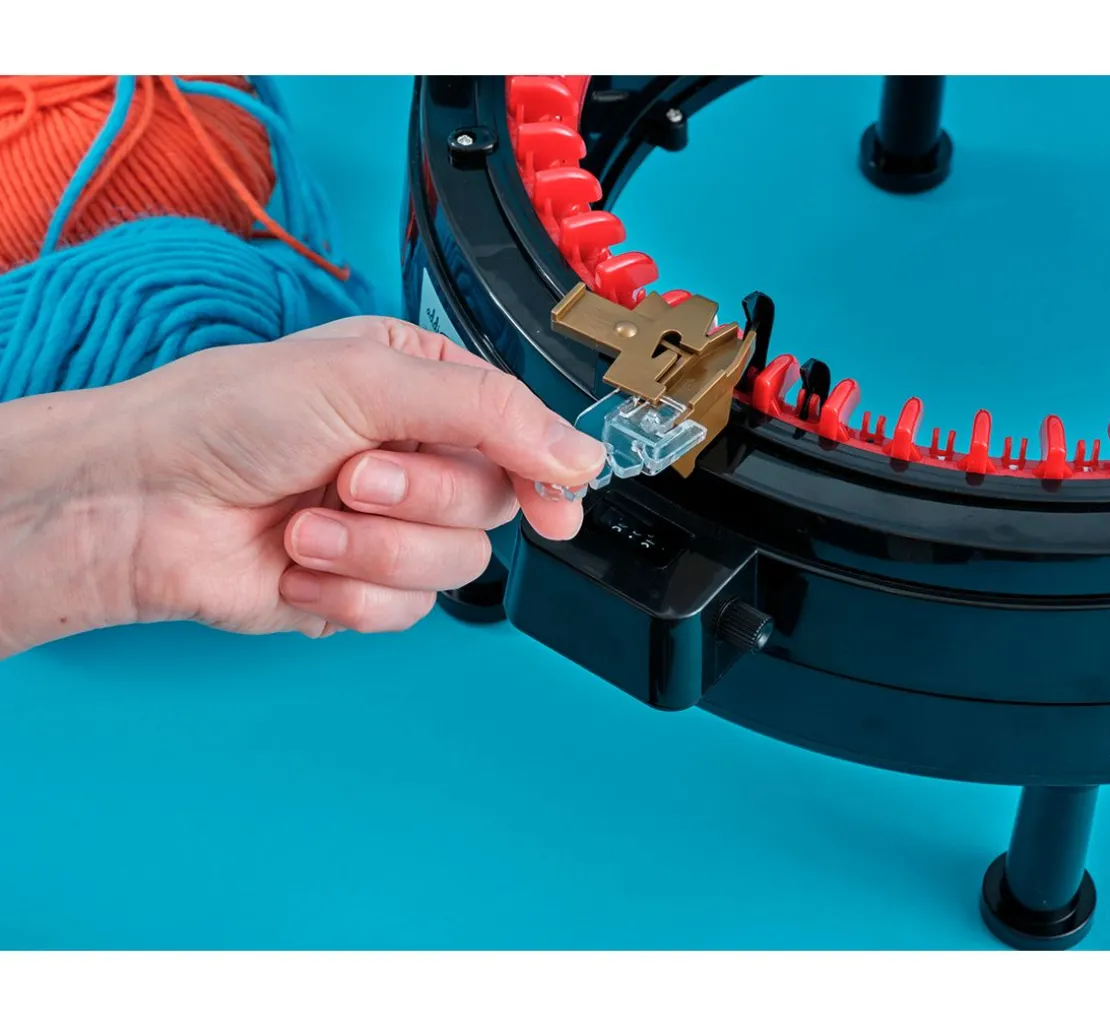 Perfekt abgestimmt auf die addiExpress Strickmaschinen (Professional und Kingsize), bietet das Set eine sichere Fixierung in der Fadenführung. Es eignet sich für alle empfohlenen Garnstärken, von 4 bis 8 mm Nadelstärke, und bietet Lochgrößen von 3 bis 4 mm Durchmesser. So kannst du dich ganz auf deine Kreativität konzentrieren, ohne dir Gedanken über Fadenhaltestress machen zu müssen.