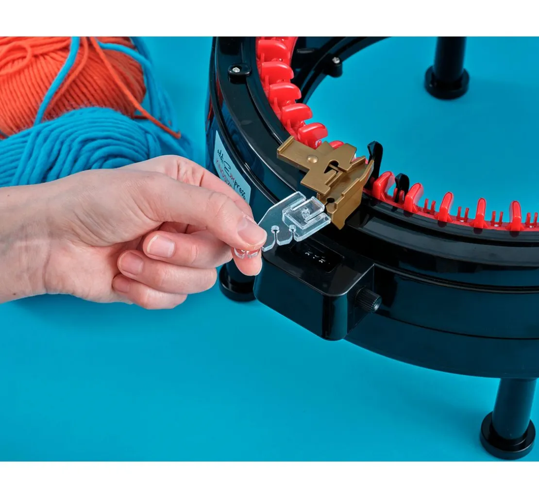 Erlebe die Magie des Handstrickens mit dem addiExpress Tension Fadenführungs-Set! Dieses unverzichtbare Zubehör sorgt für eine gleichmäßige Fadenspannung und macht dein Strickprojekt zu einem entspannten Vergnügen.