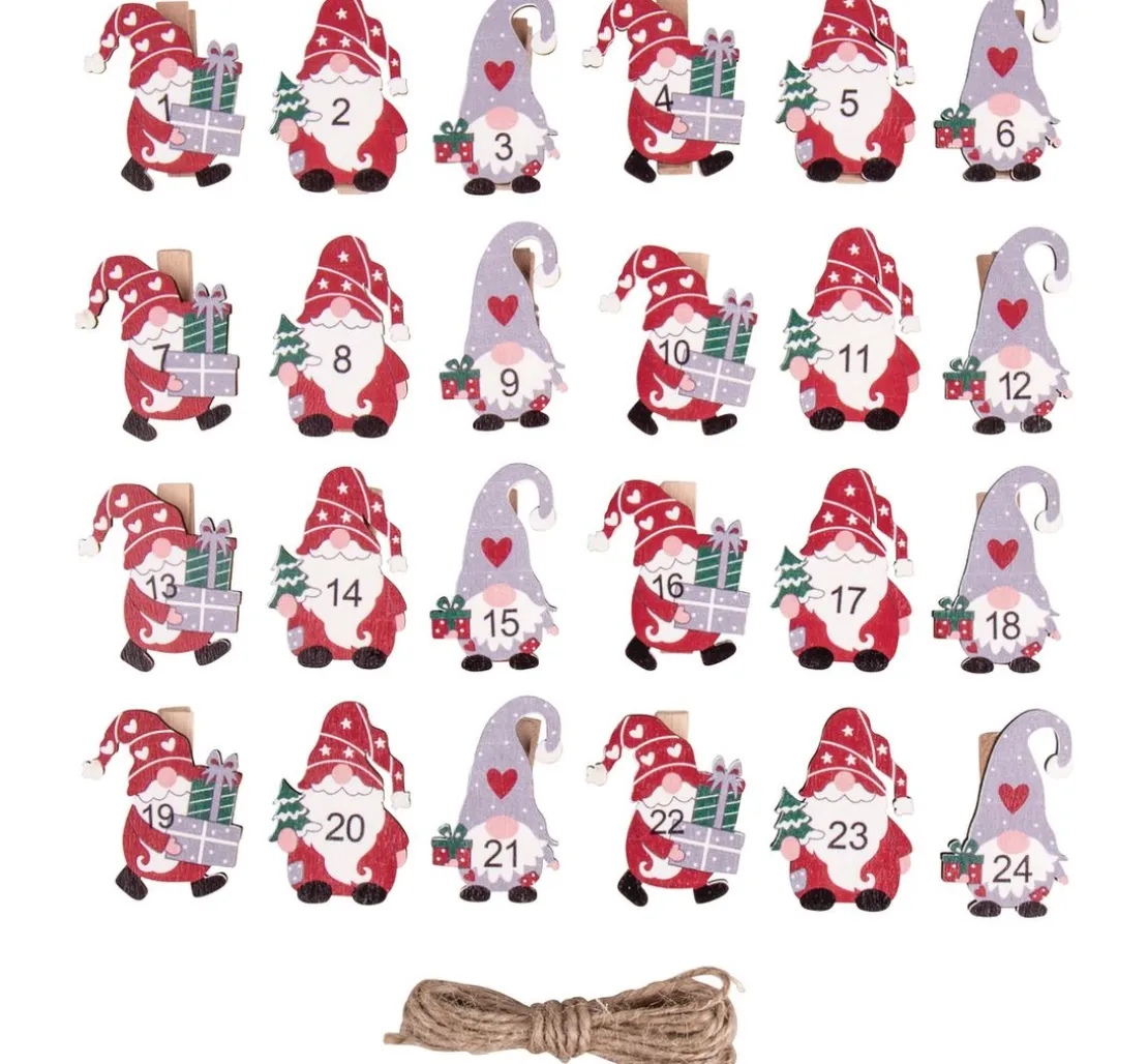 Die Holzklammer auf der Rückseite ermöglicht ein einfaches Anbringen und Umhängen. Mit der mitgelieferten 2 m langen Jute-Schnur kannst du im Handumdrehen einen individuellen Adventskalender gestalten – perfekt für spontane Ideen und kreative Projekte.