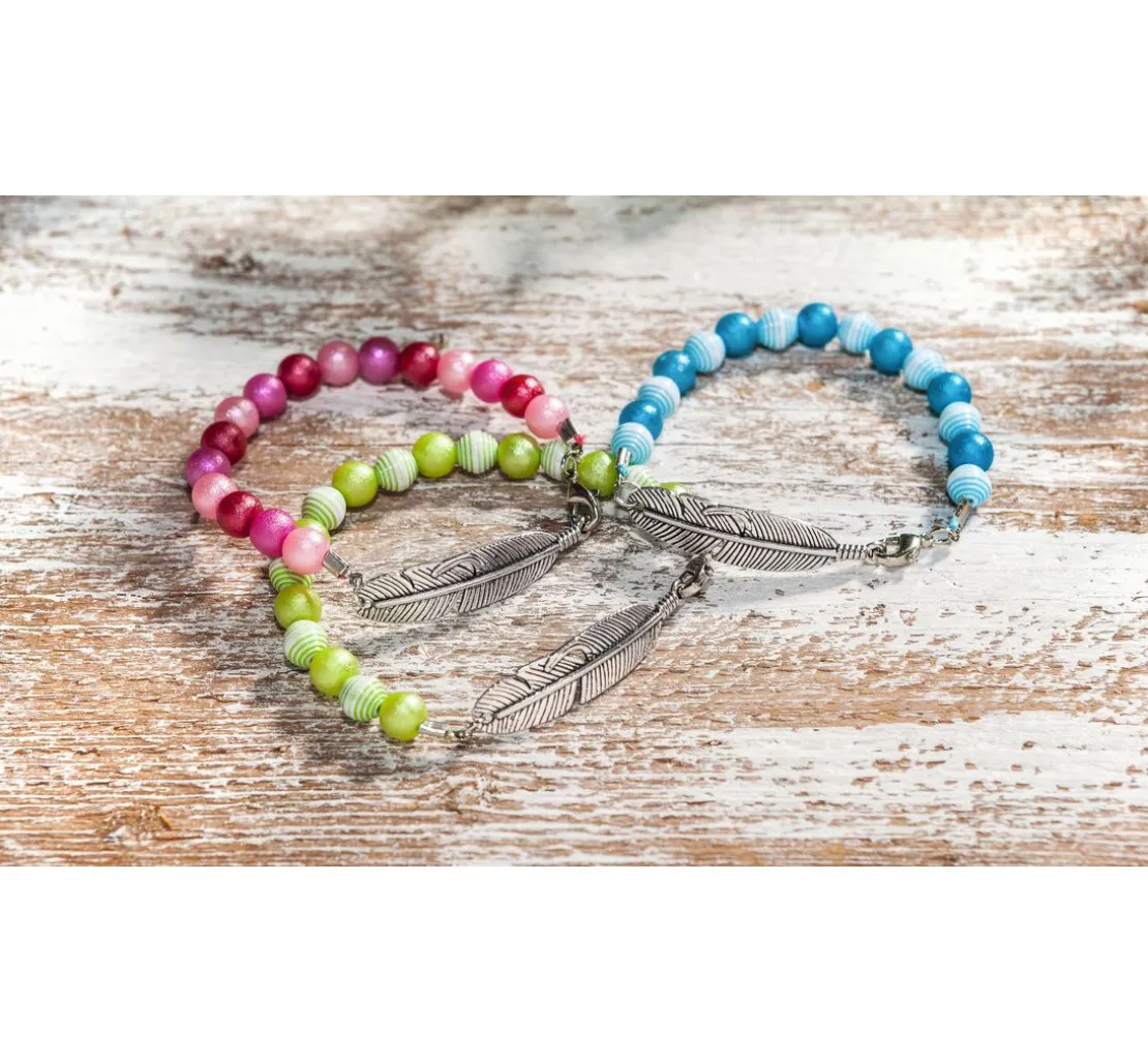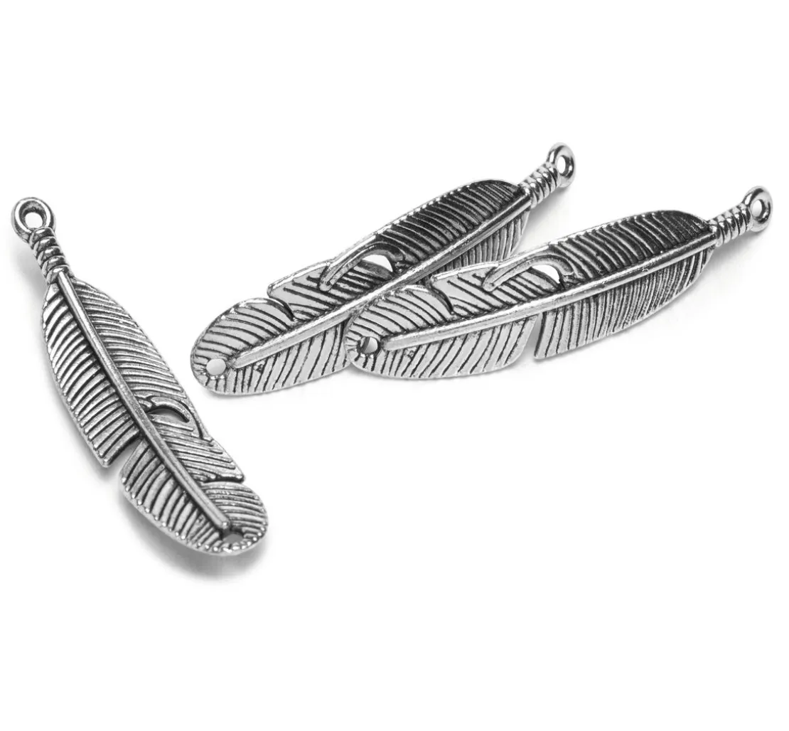 Anhänger „Federn„ mit zwei Löchern zum Auffädeln und damit ideal für Armbänder. Sie erhalten 3 Feder-Anhänger mit Doppelöse.