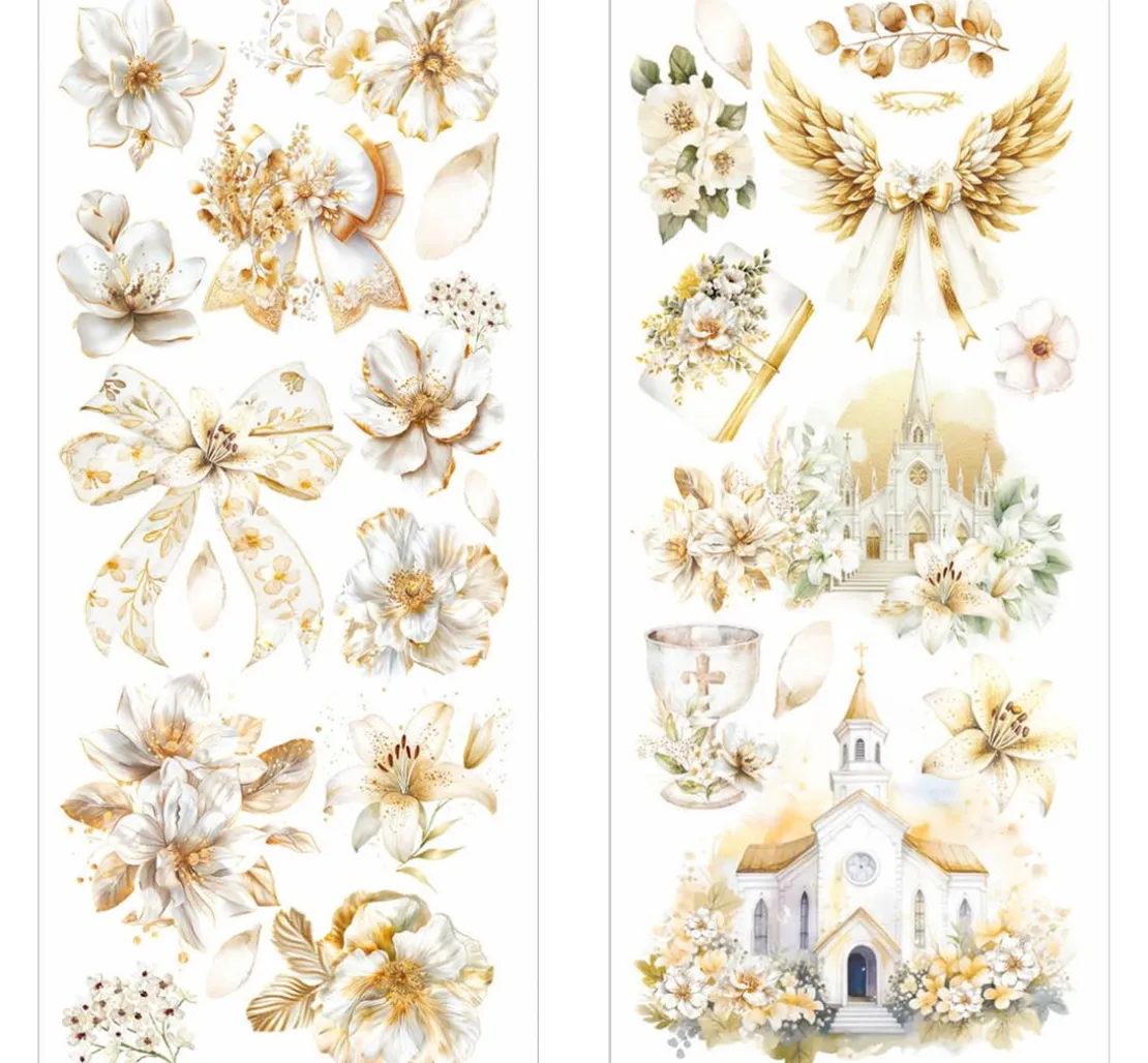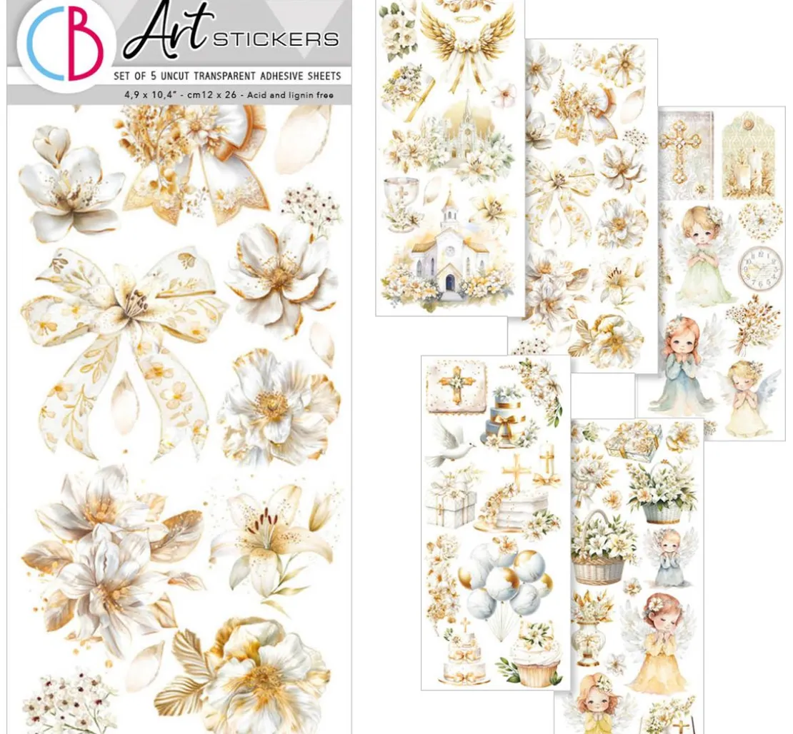 Entdecke die elegante Welt der Art Stickers „Blessing Day“ – ein kreatives Highlight für deine Bastelprojekte! Diese durchsichtigen Folien, bedruckt mit traumhaften Motiven in creme-beigetönen wie Engel, Lilien, Tauben, Kirchen, Blumenranken und vielem mehr, verwandeln jedes deiner Werke in ein Kunstwerk.