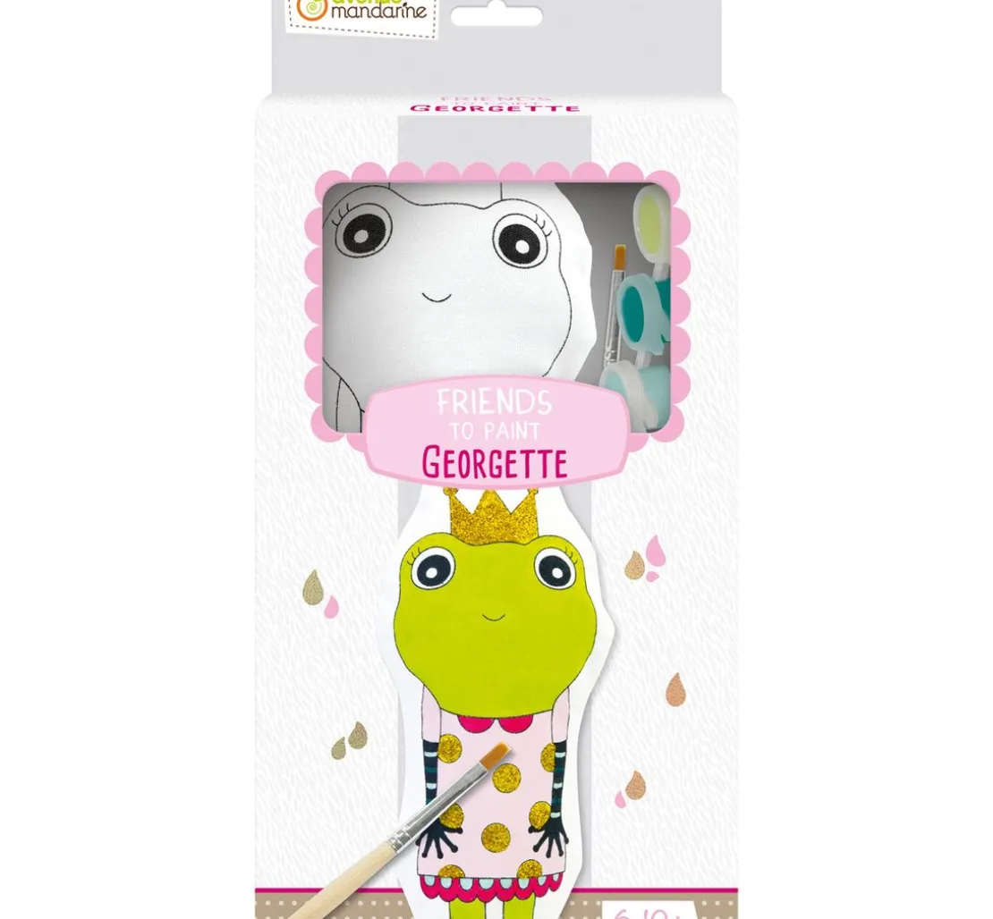 Die Avenue Mandarine Ausmalpuppe Friends to Paint „Frosch Georgette“ lässt sich mit den enthaltenen Farben bunt ausmalen. Kinder ab 6 Jahren können hier kreativ werden.