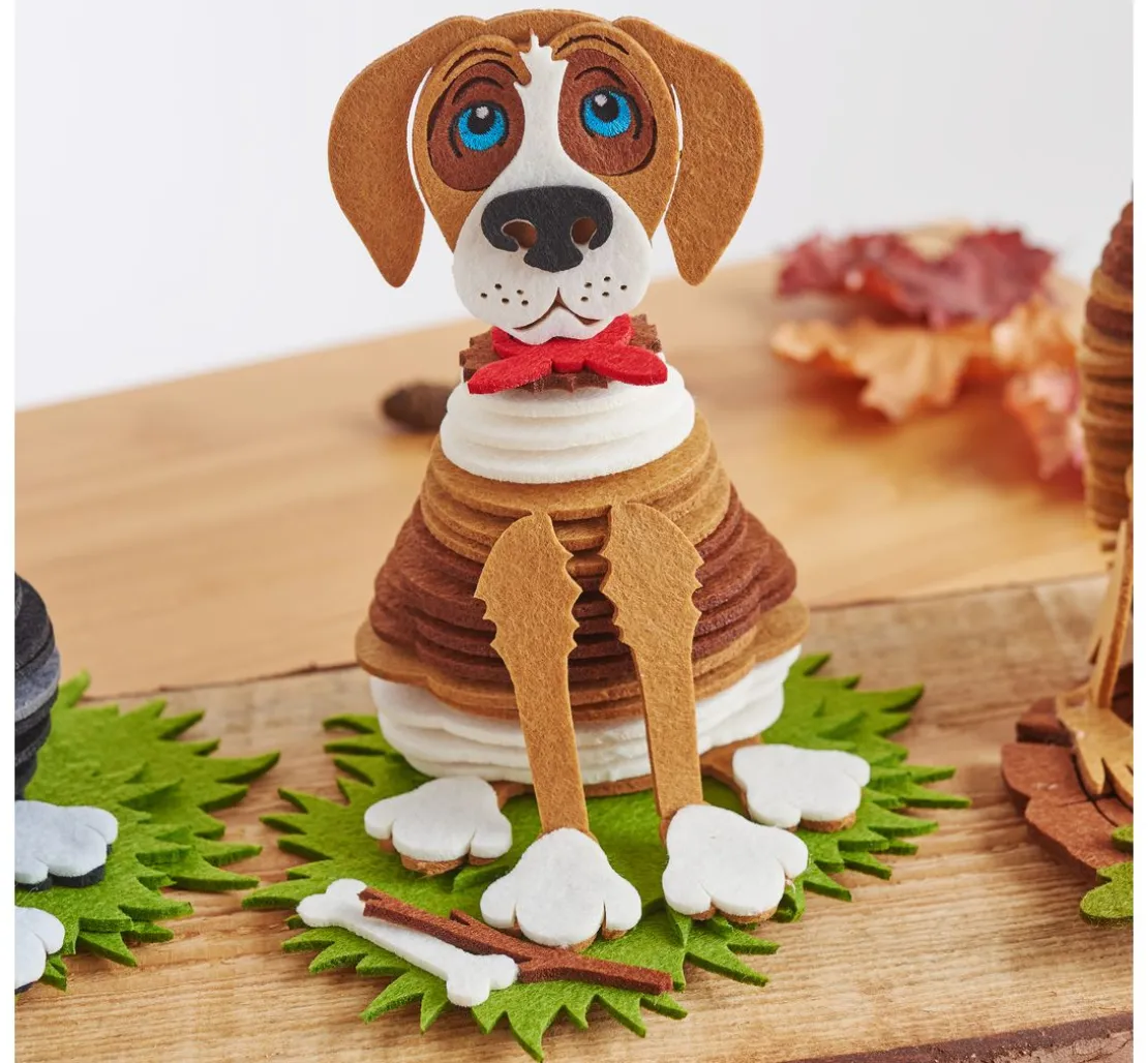 Ein bezauberndes Bastel-Set „Hund“ aus Filz. Die Höhe der fertigen Filzfigur ist ca. 18,5 cm mit einer Filzstärke von ca. 0,3 cm. Das Material ist 100 % Polyester. Mit nummerierten Einzelteilen, die einfach nacheinander auf einen beiliegenden Holzstab gesteckt werden. Mit Hilfe der Anleitung ist alles ganz einfach. Zusätzlich benötigen Sie eine Schere um die Filzteile sauber austrennen zu können und etwas Heißkleber.