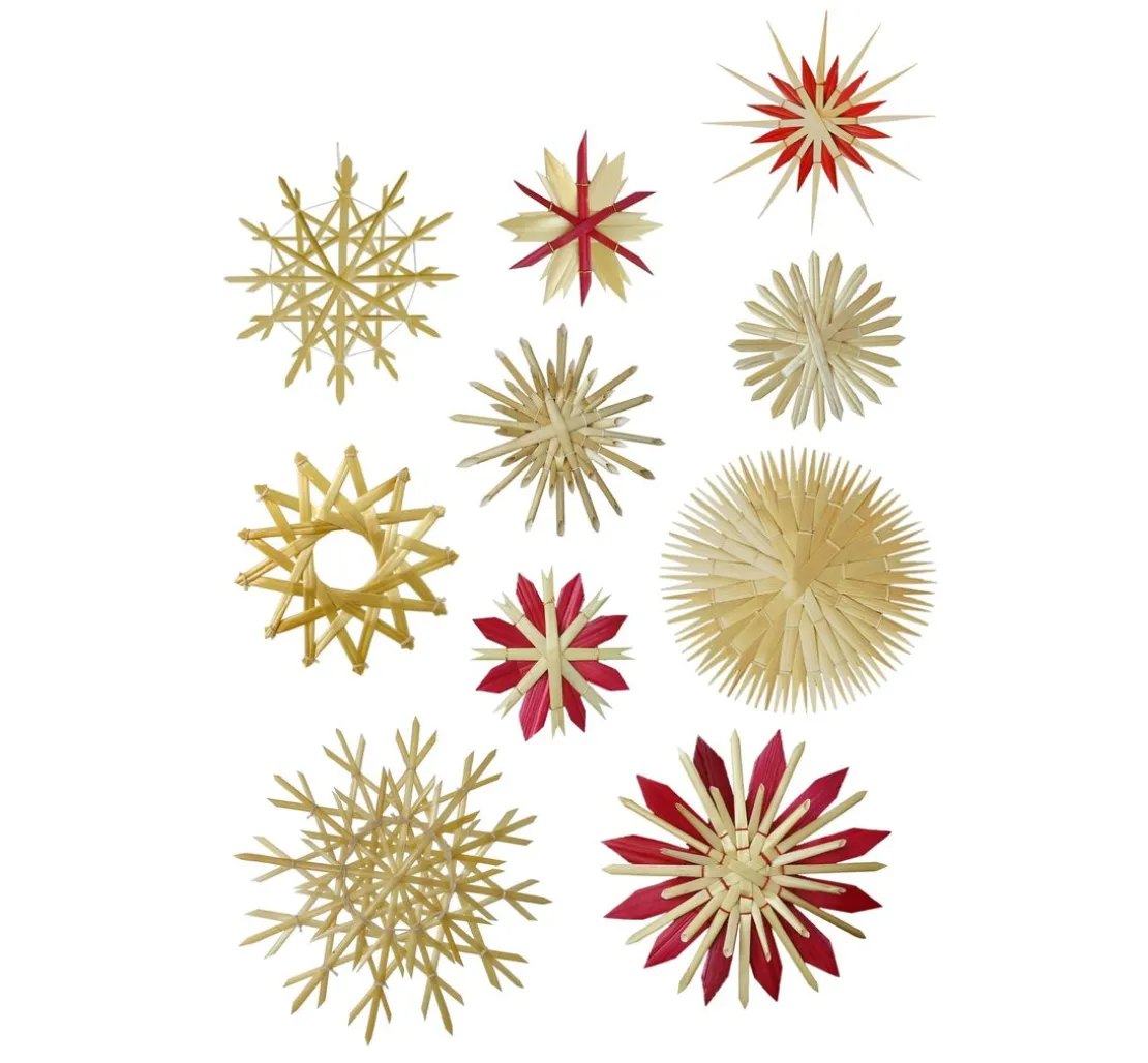 Strohsterne sind eine Erinnerung an die Kindheit! Geht es Ihnen nicht auch so? Mit Strohsternen ist eine behagliche und schöne Atmosphäre verknüpft. Das natürliche Material wird kunstvoll in die verschiedensten Sterne verwandelt. Mit diesem Set ist das ganz einfach. Durch die Legeformen kann nichts verrutschen und das Legen und Binden der Sterne geht wie von selbst. Eine ausführliche Anleitung erklärt Schritt für Schritt wie vorgegangen wird.