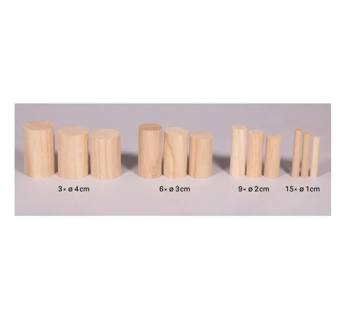 je 9 Stück – Rundstäbe 2 cm Ø: 5,5 cm, 6,0 cm, 6,5 cm hoch