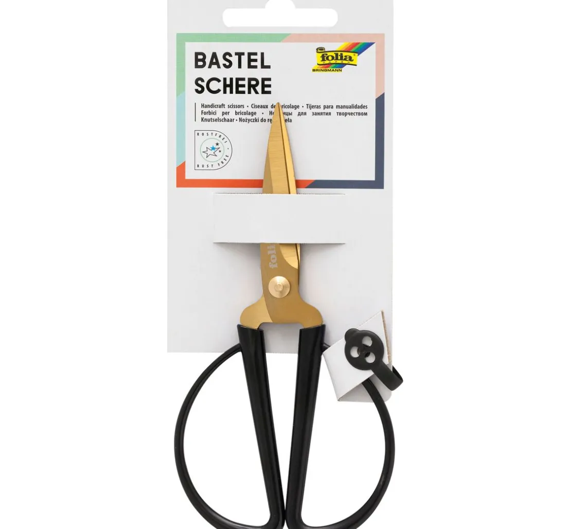 Mit der Bastelschere „Gold“ erhalten Sie nicht nur eine qualitativ sehr hochwertige Schere, die Ihnen perfekte Schneidergebnisse liefert, sondern auch noch einen stylischen Hingucker in der Bastelstube oder auch auf dem Schreibtisch.