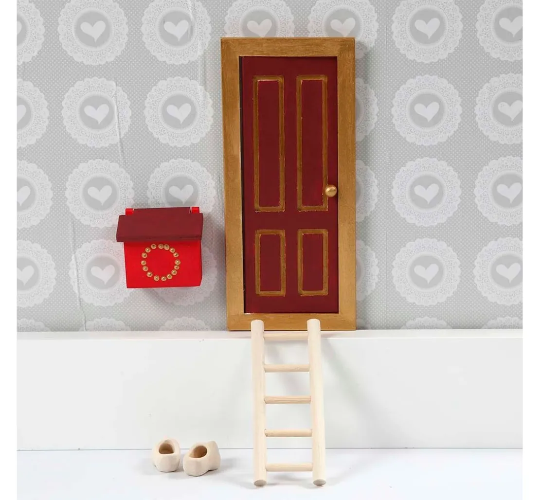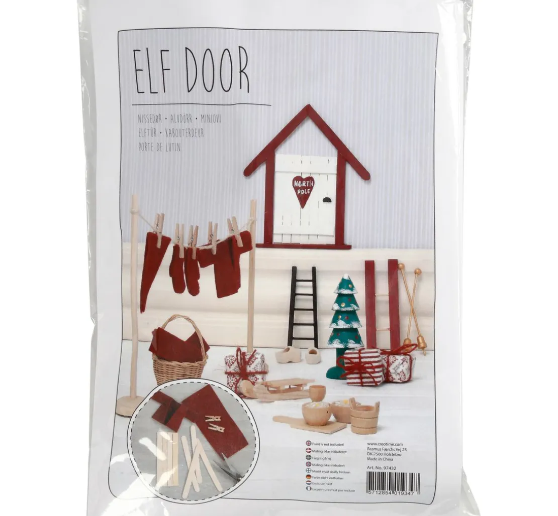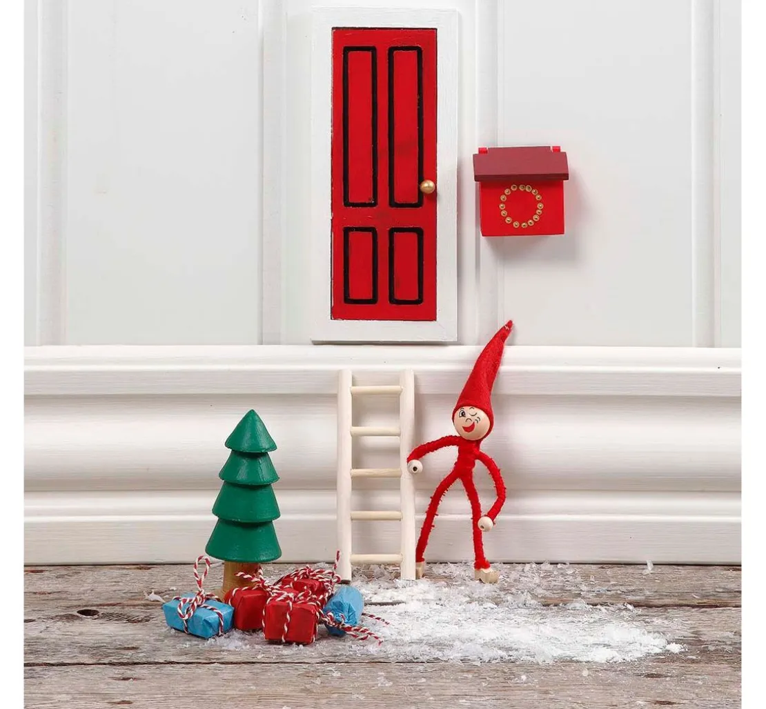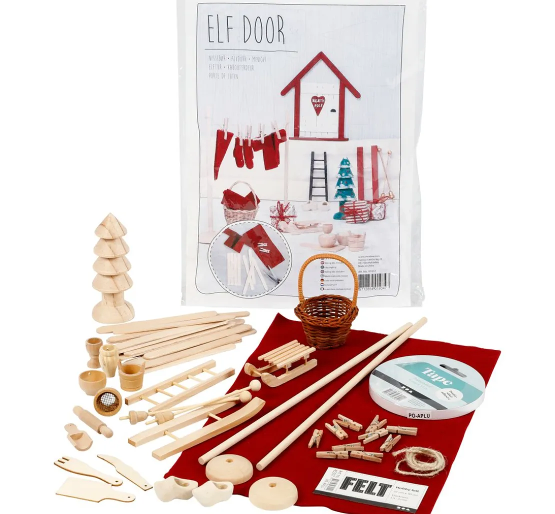 Mit diesem Bastelset Wichteltür „Elf Door“ zieht nach und nach das kleine Helferlein in der Weihnachtszeit bei Ihnen Zuhause ein. Das umfangreiche Set besteht aus Holzstielen und -stäben, rotem Filz, einer Kordel, vielen verschiedenen Holzminiaturen und lädt zum Kreativ werden ein.