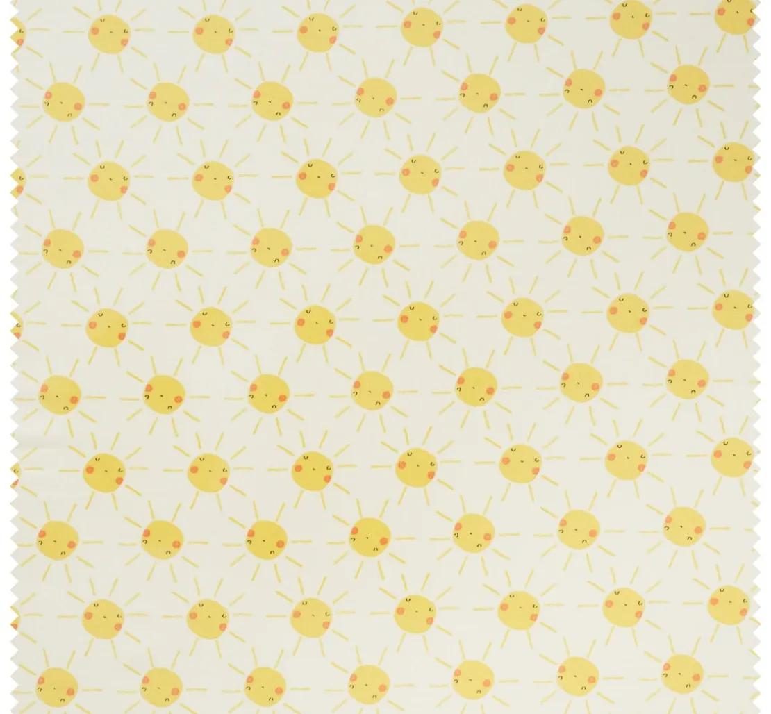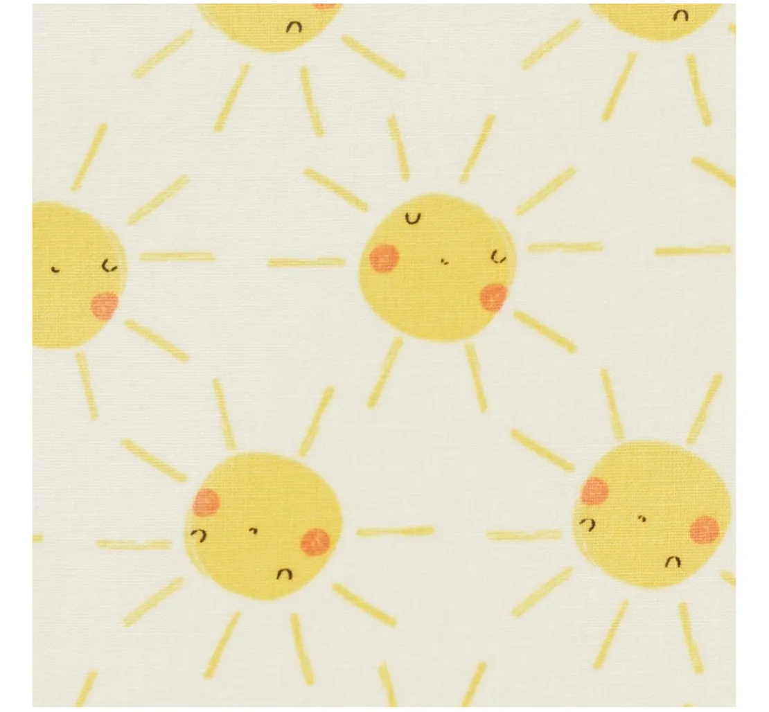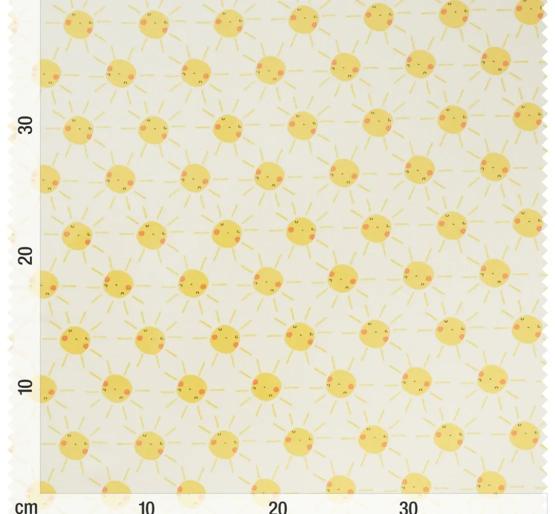Der Baumwoll-Stoff „Sunshine“ bringt mit seinem fröhlichen Sonnenmotiv auf hellem Untergrund Wärme und Leichtigkeit in jede deiner Kreationen. Perfekt für sommerliche Projekte, bietet dieser Stoff eine Breite von 150 cm, von denen 147 cm bedruckt nutzbar sind. Die Grammatur von 115 g/m² sorgt dafür, dass er sowohl leicht als auch formstabil ist.