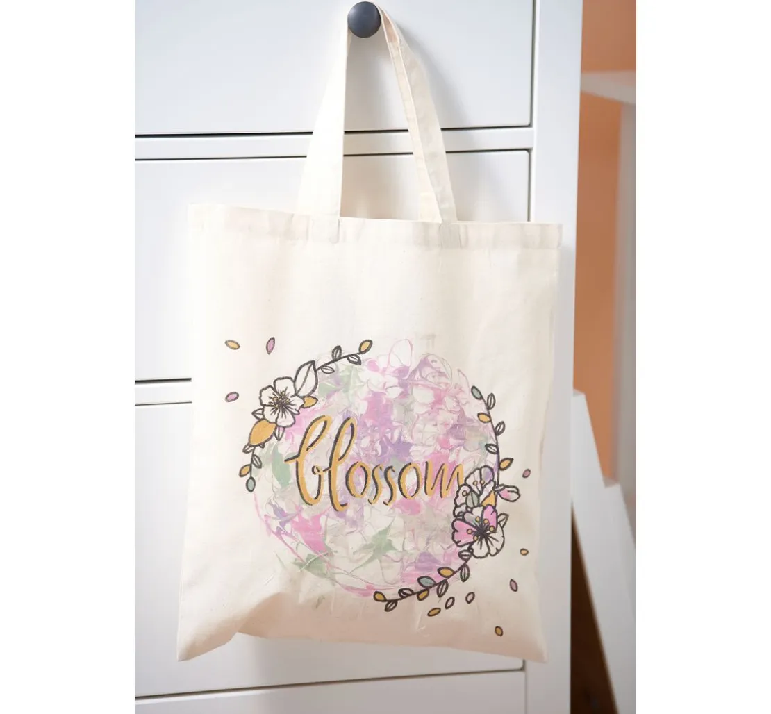 Gestalten Sie die Tasche mit Stoffmalfarbe und Stiften, mit der Stempeltechnik oder mit Schablonen.