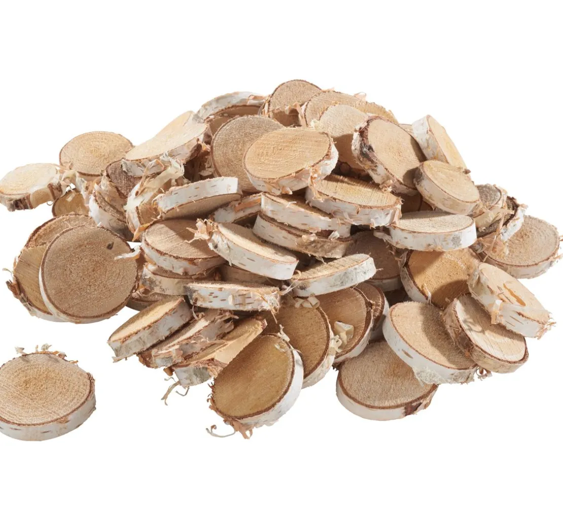 Der Birkenscheiben-Mix mit einem Inhalt von ca. 500 g besteht aus unterschiedlich großen Holzscheiben mit einem Ø von ca. 2,0 – 5,0 cm. Da es sich um Naturmaterial handelt, kann es zu Unterschieden in der Größe und Farbgebung kommen.