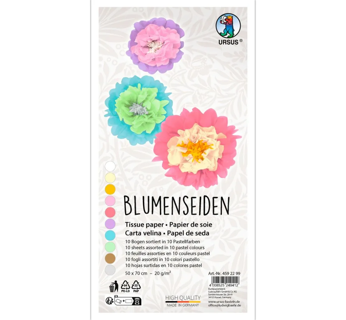 Mit diesen Seidenpapieren kannst du nicht nur Blumen gestalten, sondern auch Scrapbookarbeiten, Grußkarten, Schachteln und Papiertüten verzieren. Deiner Kreativität sind keine Grenzen gesetzt! Wie wäre es mit einer selbstgemachten Blumenwand als Hintergrund für Fotos?