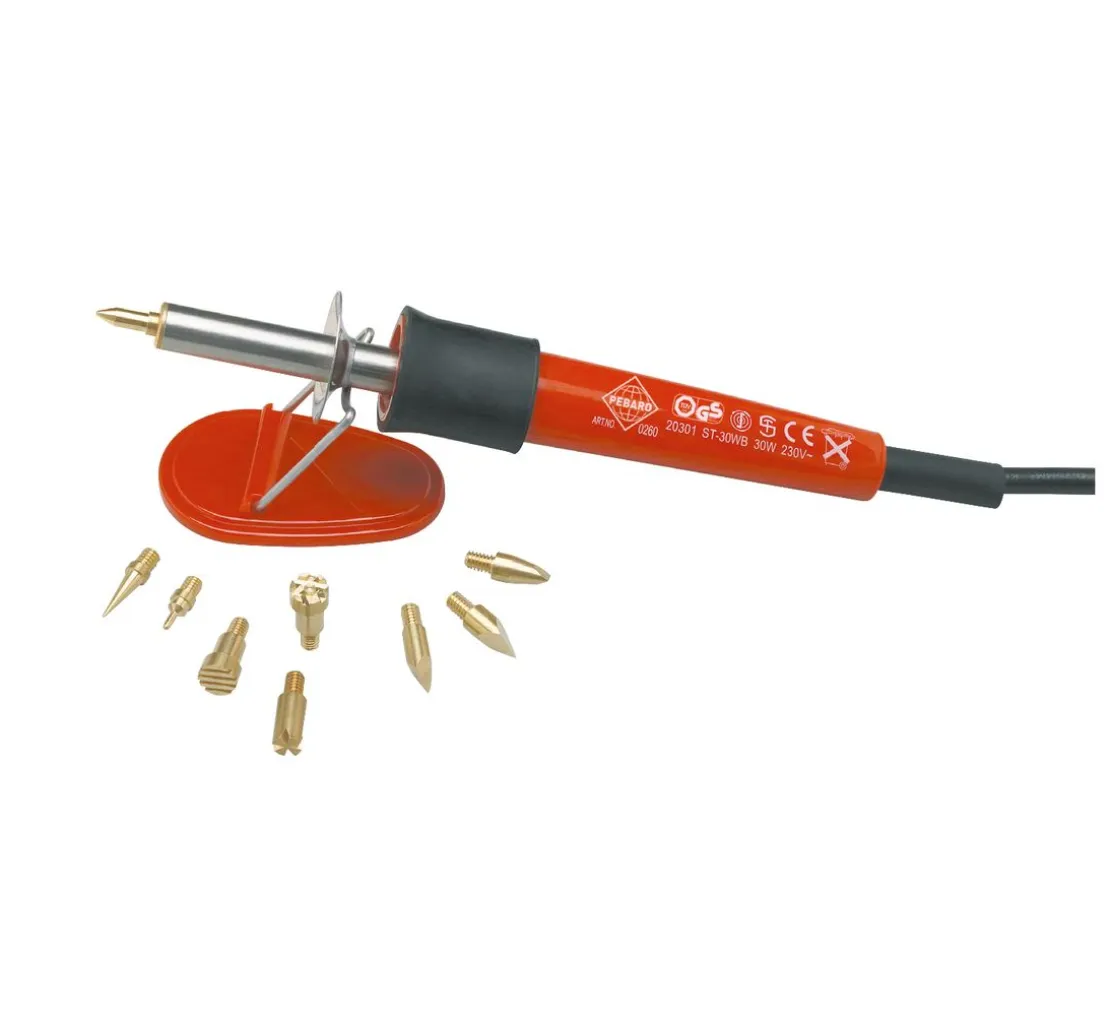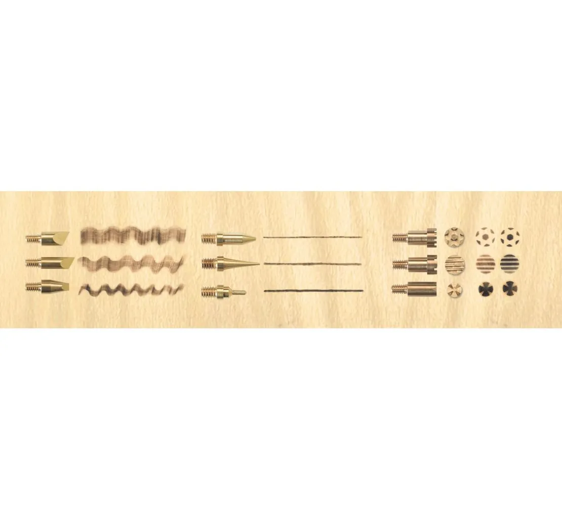 - Zubehör: 1 Ablageständer, 6 Brennspitzen, 3 Brennstempel