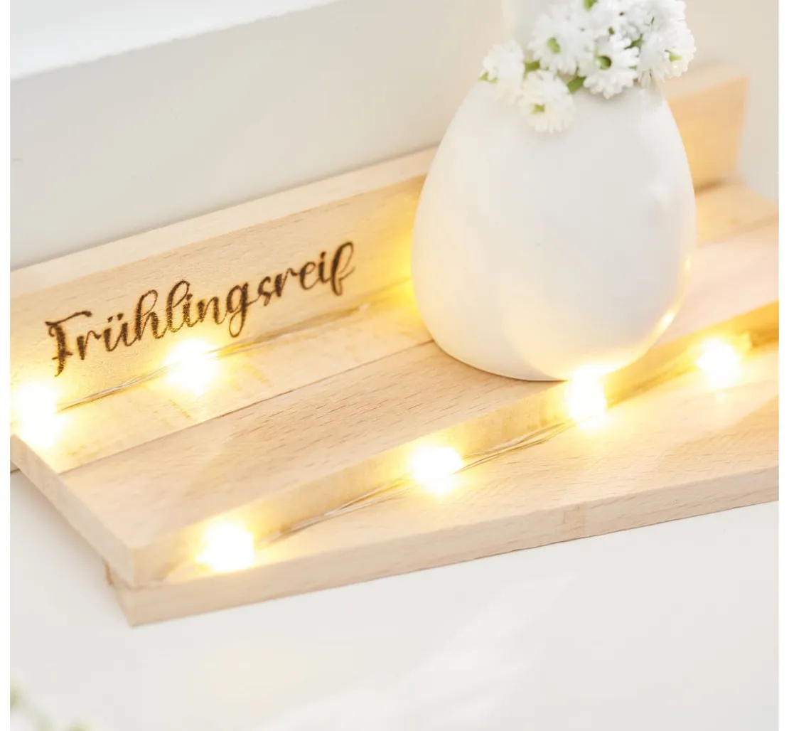 Tipp: Wenn Sie die Holzoberfläche vorher mit Schleifpapier abschleifen, entfernen Sie lose Holzfasern und können anschließend die Malspitze auf der glatten Maloberfläche leichter entlang führen.