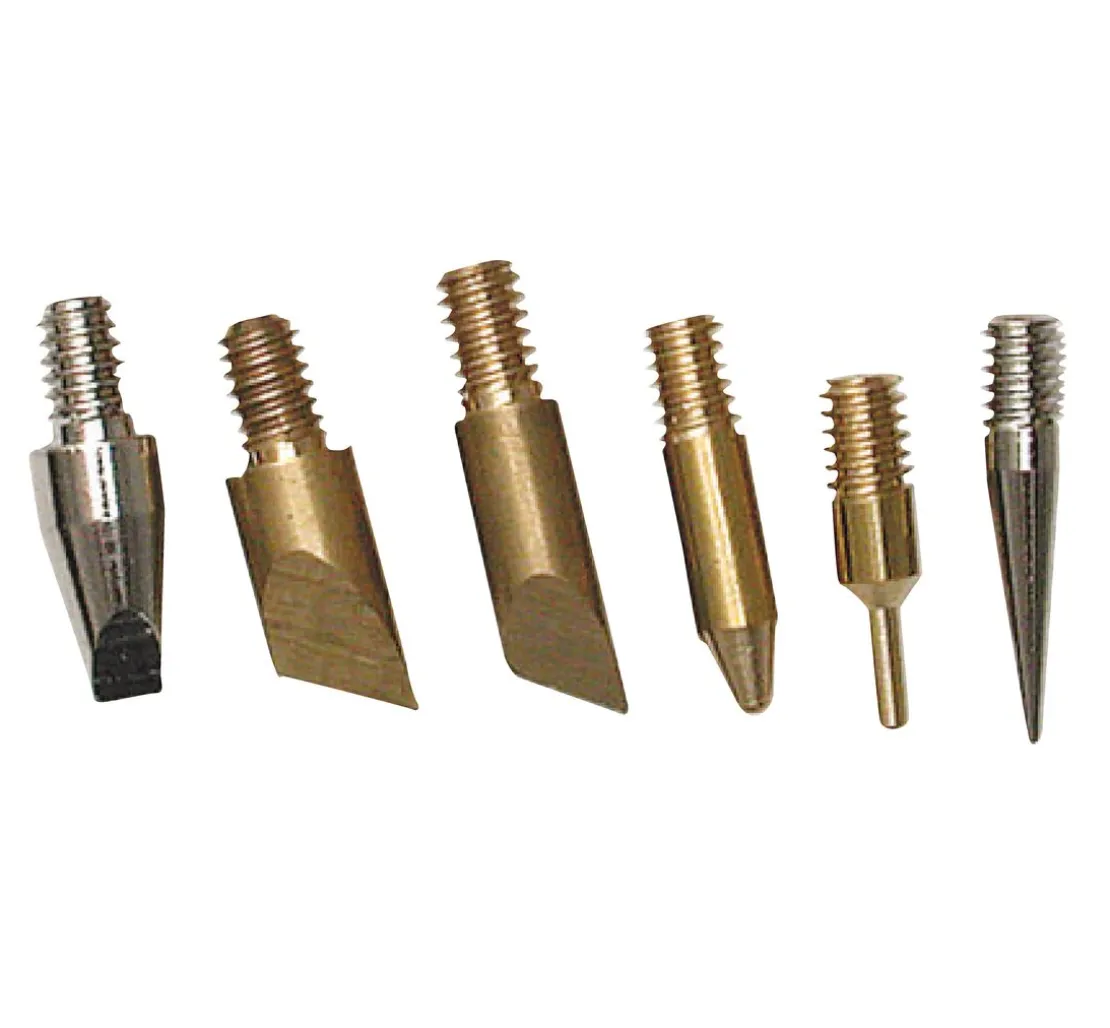 Die Ersatz-Brennspitzen für den Brandmal-Pen und die Brennstation bieten Ihnen noch mehr Möglichkeiten in der Brandmalerei. Mit den verschiedenen Mal- und Schreibspitzen können Sie, ohne Druck auszuüben, verschiedene Strichstärken brennen. Verzieren Sie Oberflächen aus Holz, Leder und Kork, z.B. Schilder, Frühstücksbrettchen, Gürtel uvm. Anschließend können Sie Ihre fertig verzierten Holzteile mit farbiger Holzlasur gestalten oder Sie überziehen Sie das Holz mit mattem Holzlasur-Lack, um die Oberfläche gegen Schmutz und Feuchtigkeit zu schützen.