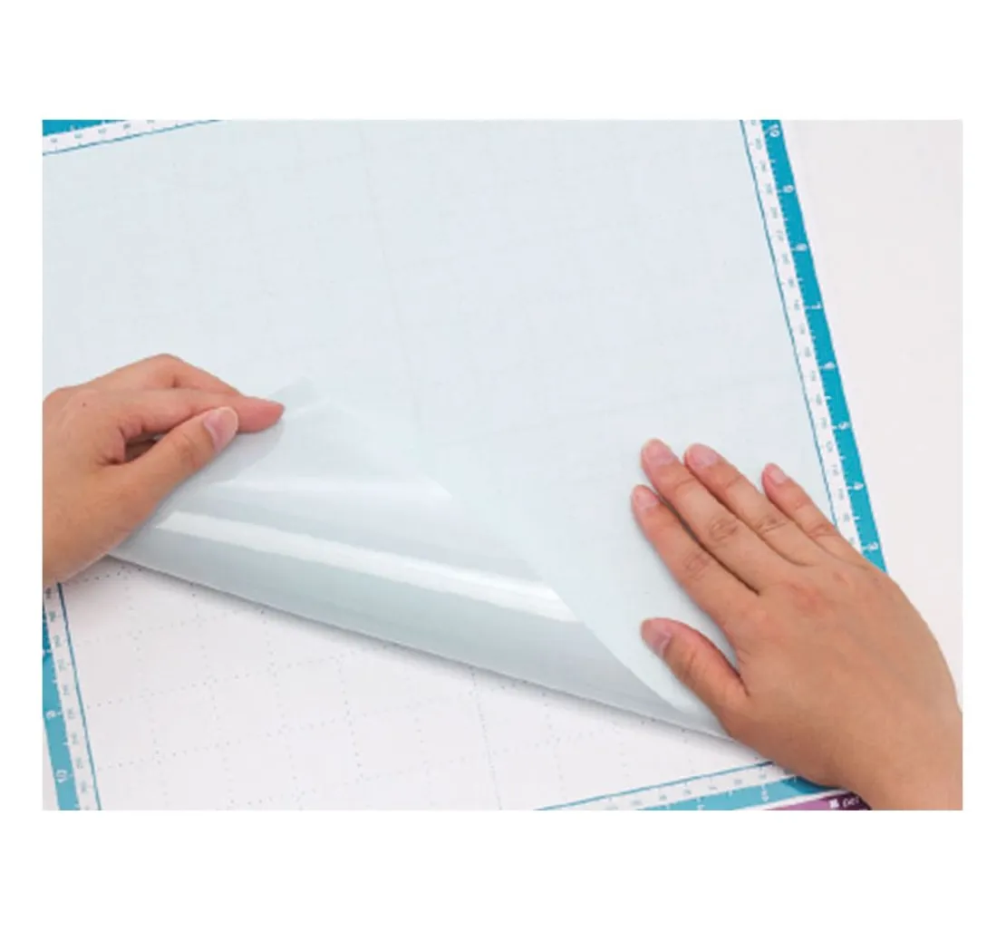 Legen Sie die Folie mit der nicht klebenden Fläche auf die Matte.