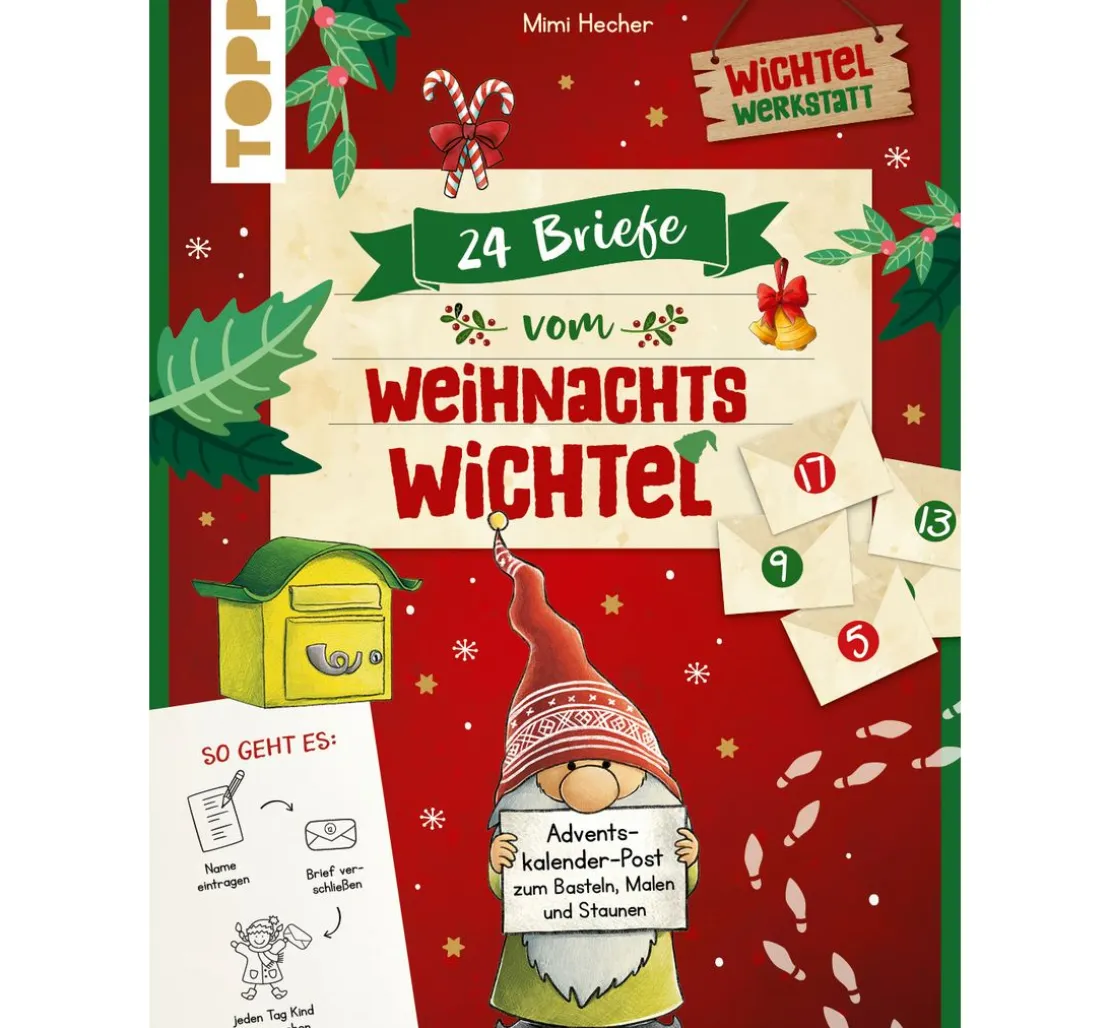 Mit dem Buch „24 Briefe vom Weihnachtswichtel Adventskalenderbuch“ können Kinder und Eltern die Vorweihnachtszeit ganz besonders erleben. Dieses Buch enthält 24 Wichtelbriefe zum Ausschneiden und Zusammenfalten, die jeden Tag eine neue Überraschung bereithalten. Das Buch beinhaltet insgesamt 96 Seiten und ist ein Softcover im Format 21 x 28 cm.
