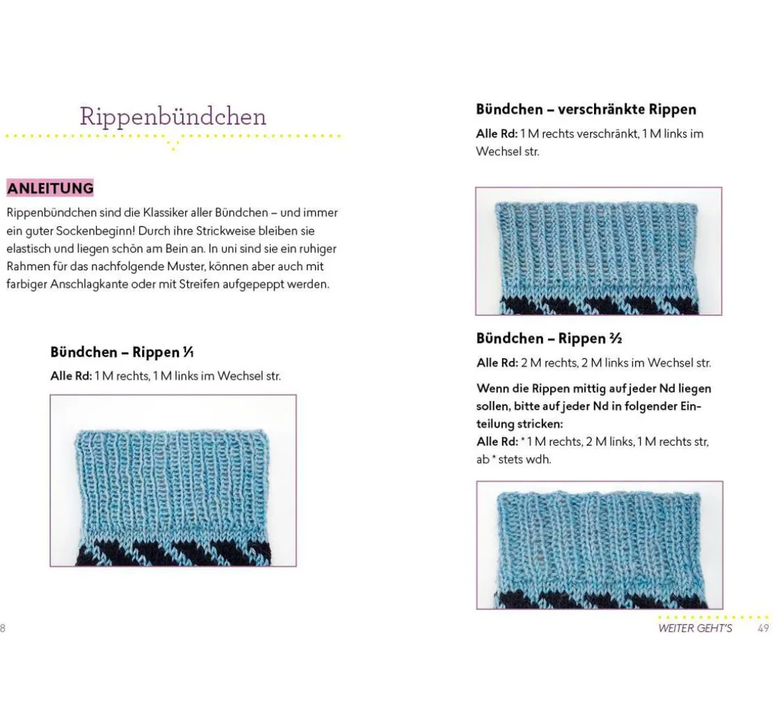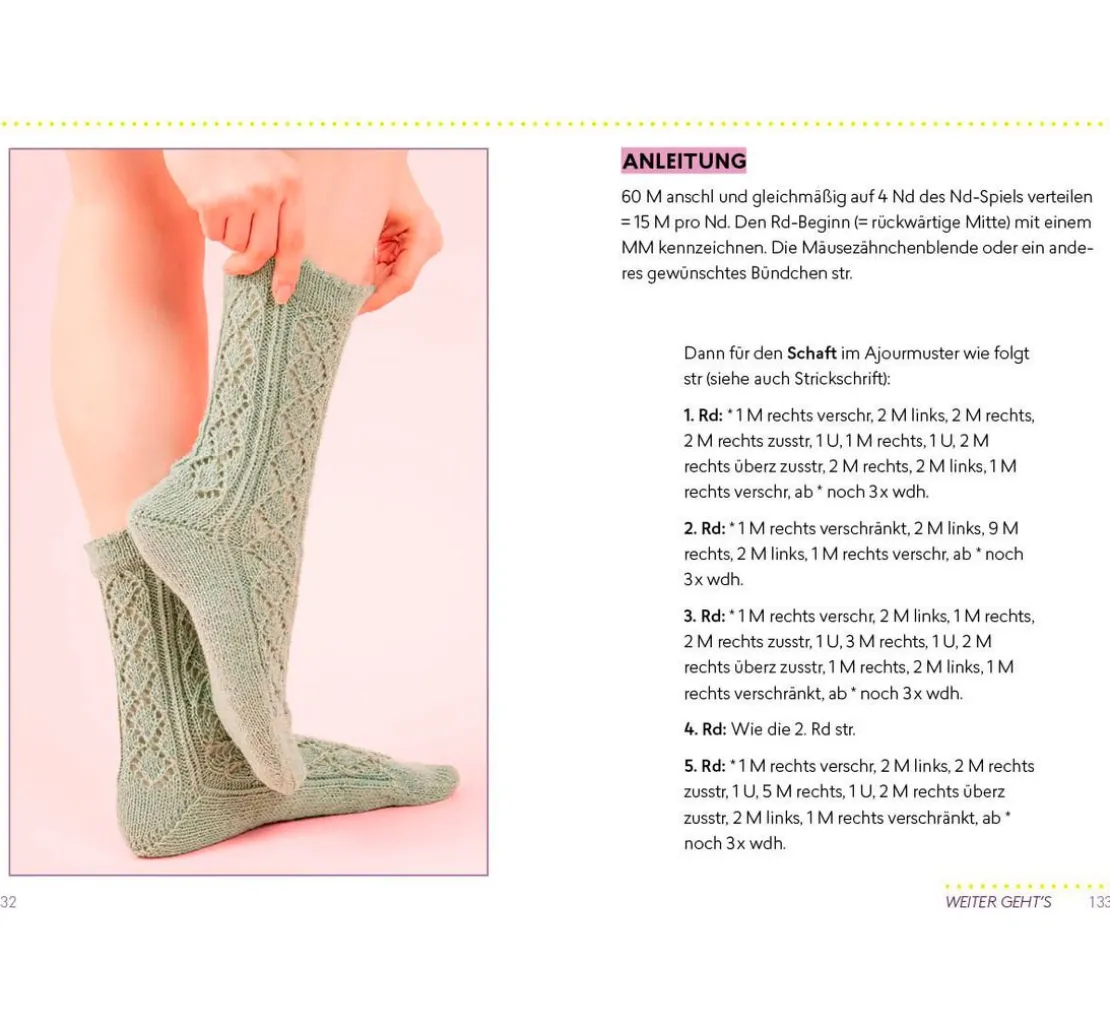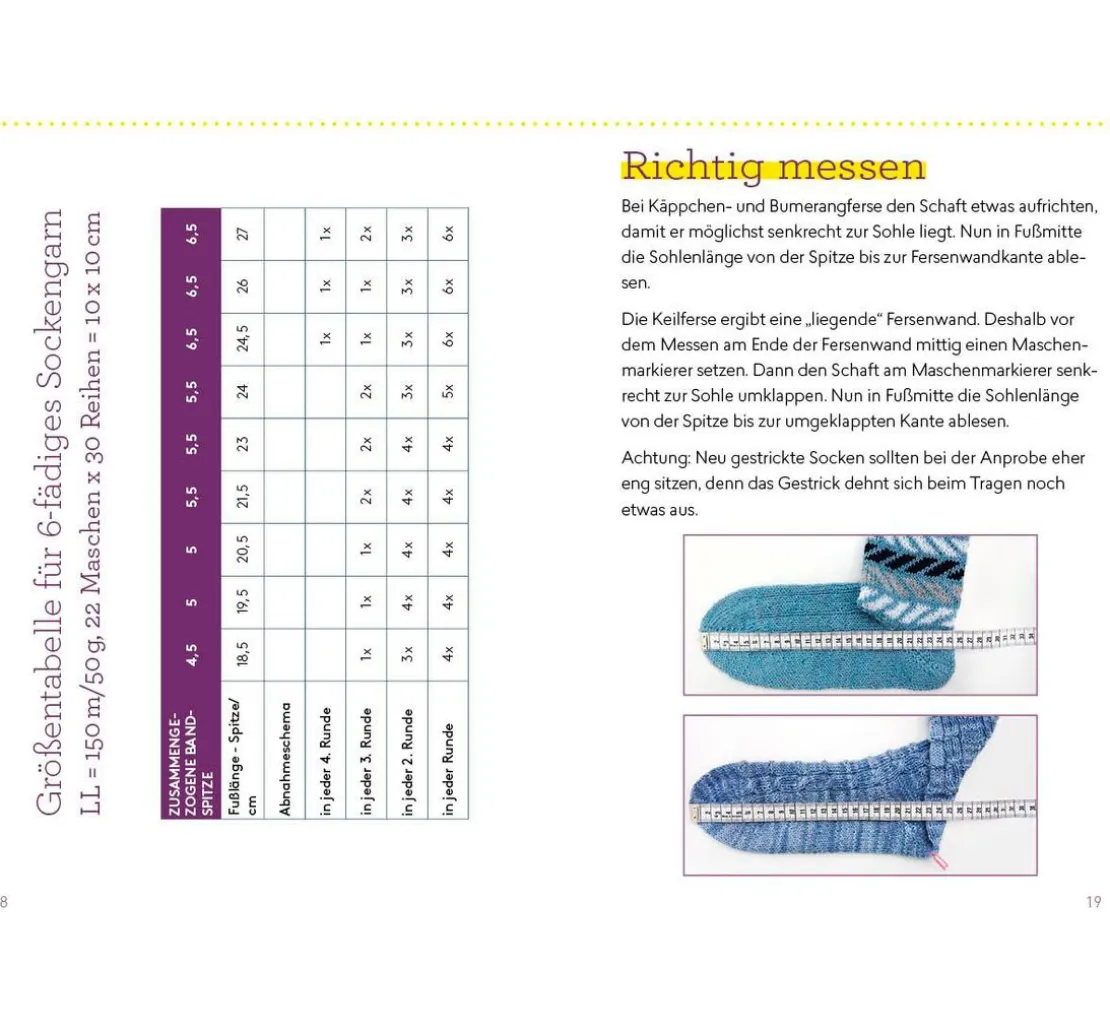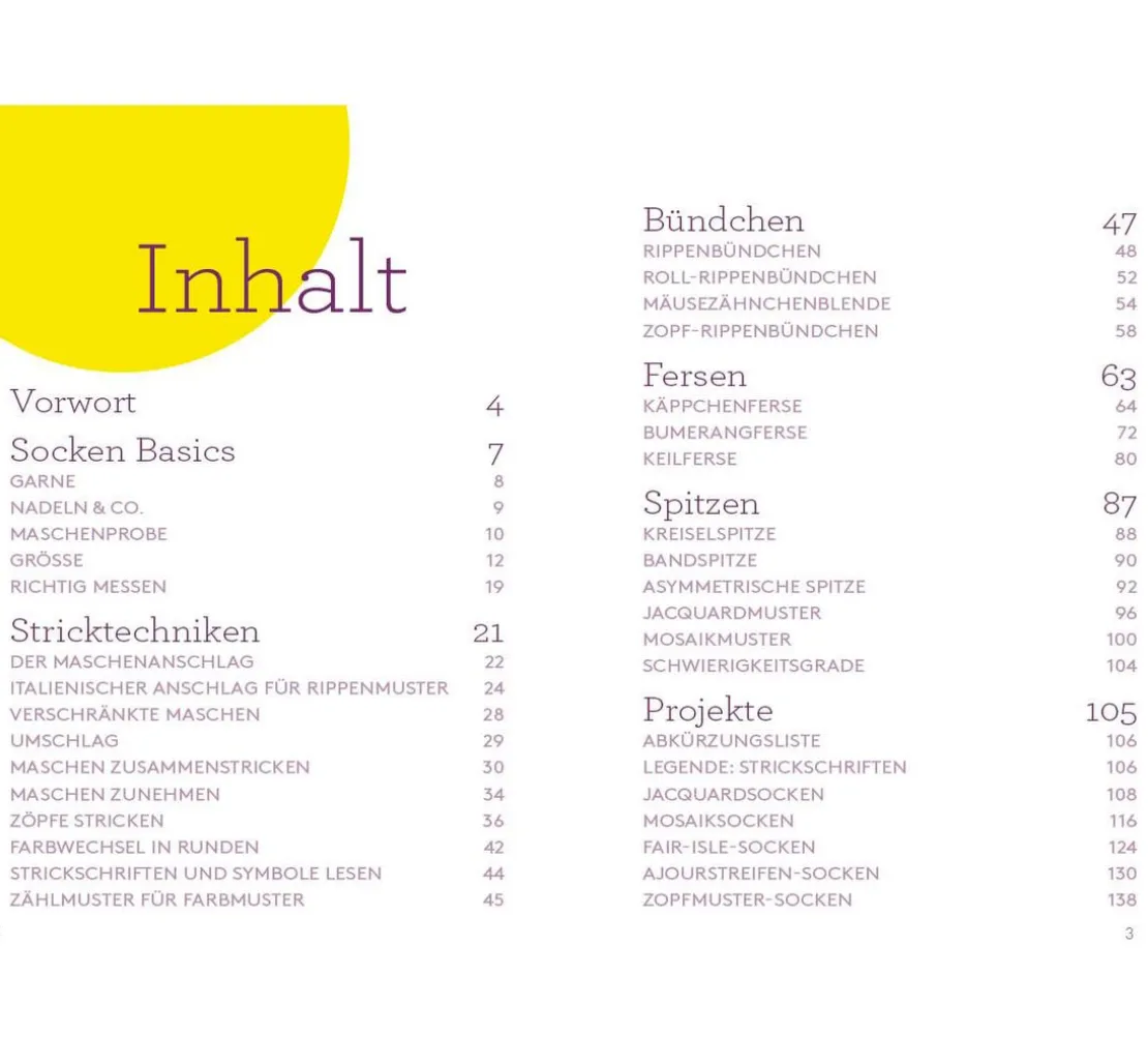 Mit must-have Techniken für verschiedene Bündchen und Spitzen, Größentabellen, weiterführenden Techniken für Muster und kompletten Anleitungen für Sockenprojekte