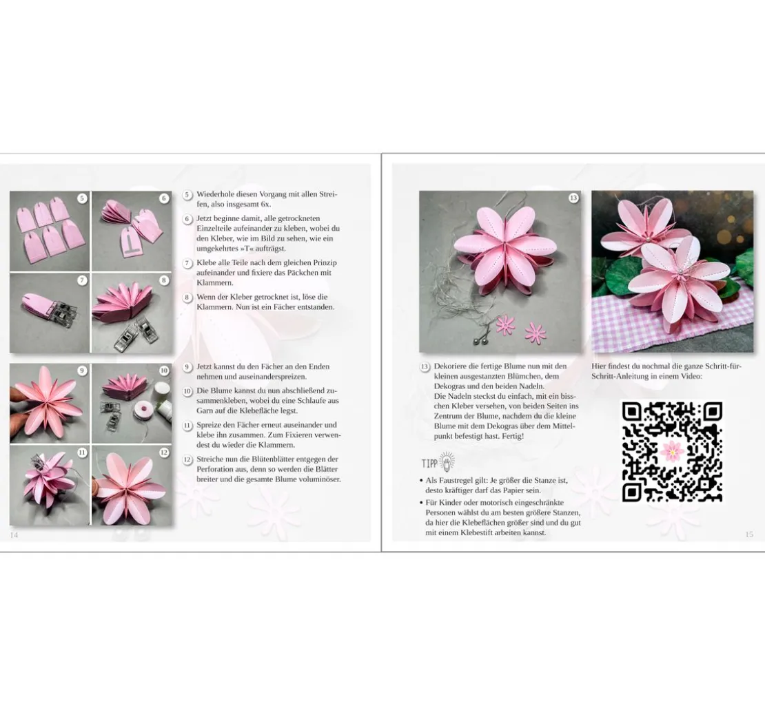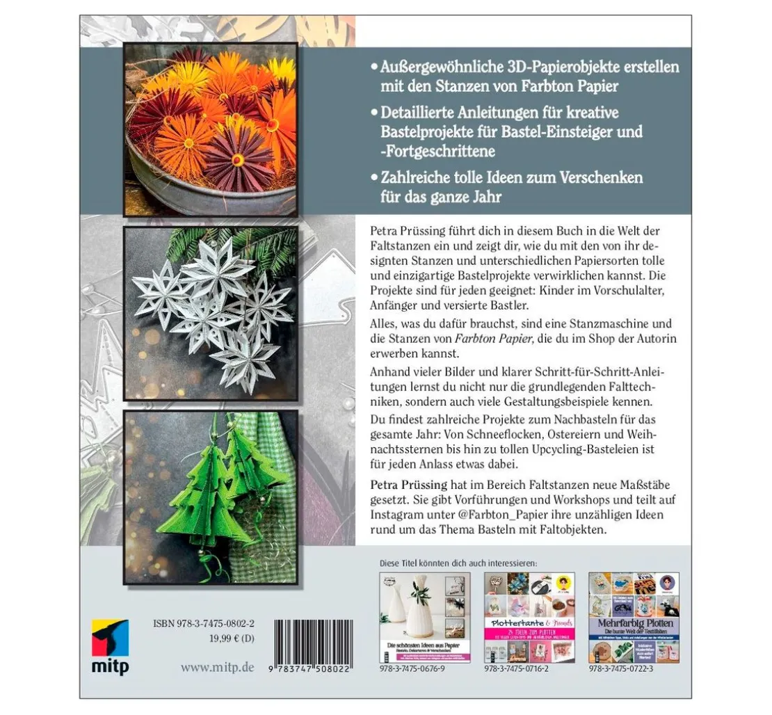 Mit den Stanzen von Farbton Papier, die du im Shop der Autorin erwerben kannst, sind deiner Kreativität keine Grenzen gesetzt. Ob für Kinder im Vorschulalter oder versierte Bastler, die Projekte sind für jeden geeignet. In dem Buch findest du zahlreiche Gestaltungsbeispiele und Schritt-für-Schritt-Anleitungen, die dir nicht nur die grundlegenden Falttechniken zeigen, sondern auch viele tolle Ideen für jeden Anlass bieten.