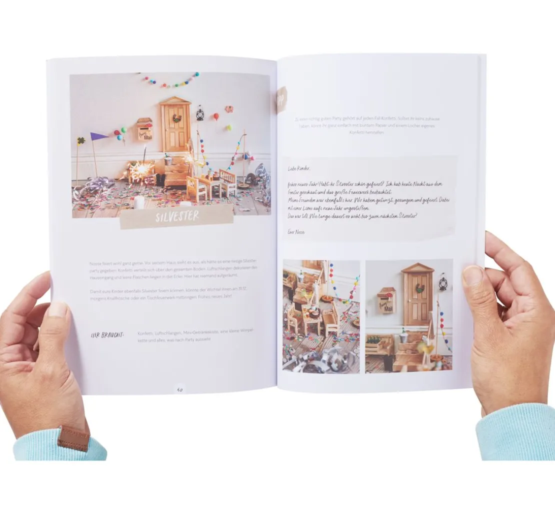 Tolle Anwendungsbeispiele, bunte Illustrationen, Texte und viele DIY-Vorschläge rund um kreative Wichtelszenen werden in diesem Heft anschaulich und voller Herzblut vorgestellt. Besonders die Kinder kommen mit den vielen Vorschlägen und Szenen auf ihre Kosten. Vom Einzug des Wichtels mit chaotischer Baustelle, über kleine Streiche und Spiele während der Vorweihnachtszeit bis zum Auszug des kleinen Helferleins werden einfache Projekte und witzige Ideen präsentiert. Kurze Nachrichten direkt an die Kinder sorgen für großen Spaß und lassen die Kinderaugen leuchten.