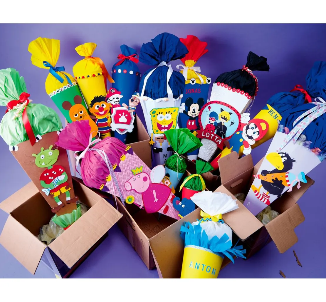 Mit Heldenkraft und Prinzessinnen-Power gestaltest du gemeinsam mit deinem Kind eine individuelle Schultüte mit den liebsten Medienfiguren deines Kindes. Ob superstarke Mädchen, mutige Feuerwehrmänner oder tapfere Tiere – mit den Helden aus den beliebtesten Filmen, Serien und Büchern wird die Einschulung zu einem unvergesslichen Erlebnis.
