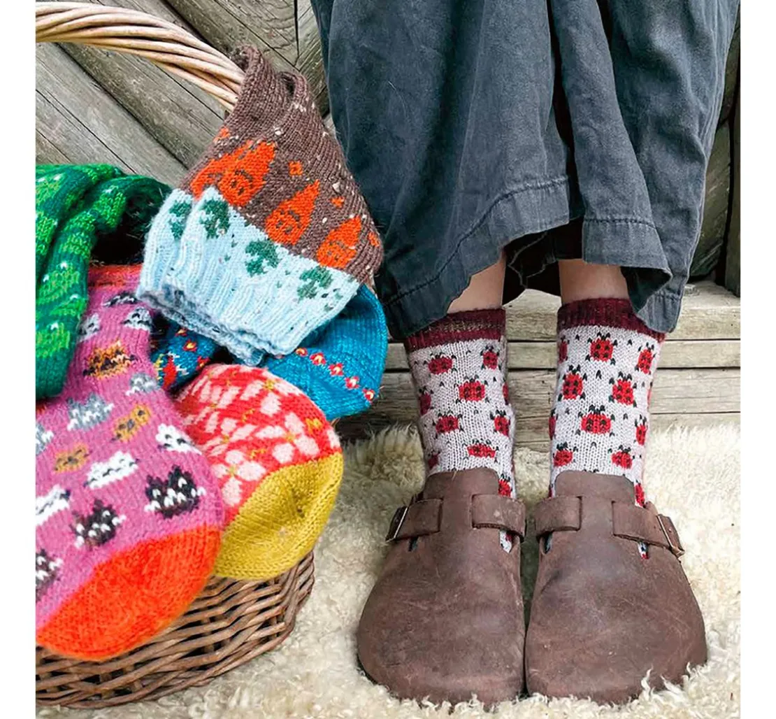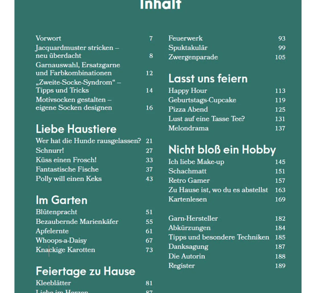Du wirst mit 25 einzigartigen Motivsocken überrascht, die deine individuellen Vorlieben in Szene setzen – ob Haustiere, Essen oder Hobbys, hier ist für jeden Geschmack das richtige Motiv dabei. Detaillierte Anleitungen und wertvolle Tipps von Charlotte machen komplexe Muster wie „Apple Picking“ oder „Who Let the Dogs Out?“ zu einem Kinderspiel. Mit ihrem fachkundigen Rat erhältst du die perfekte Passform und wirst in die Raffinessen der Jacquard-Techniken eingeführt – ideal für Anfänger:innen und Fortgeschrittene.
