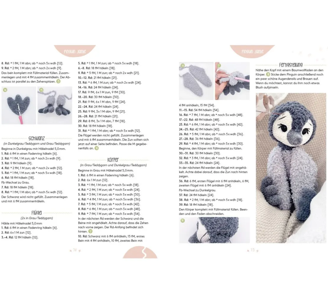 Stell dir vor, du hältst einen 40 cm großen, selbstgehäkelten Teddybären in den Armen oder schenkst einem Kind einen drolligen Pinguin zum Kuscheln. Dieses Buch bietet dir eine Vielfalt niedlicher Tiere, die du mit weichem Teddy- und Fellgarn erschaffen kannst – perfekt für kleine und große Hände.