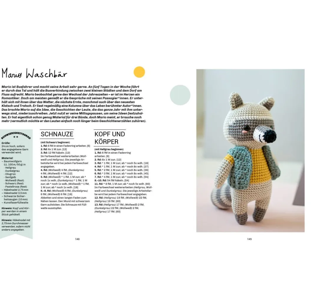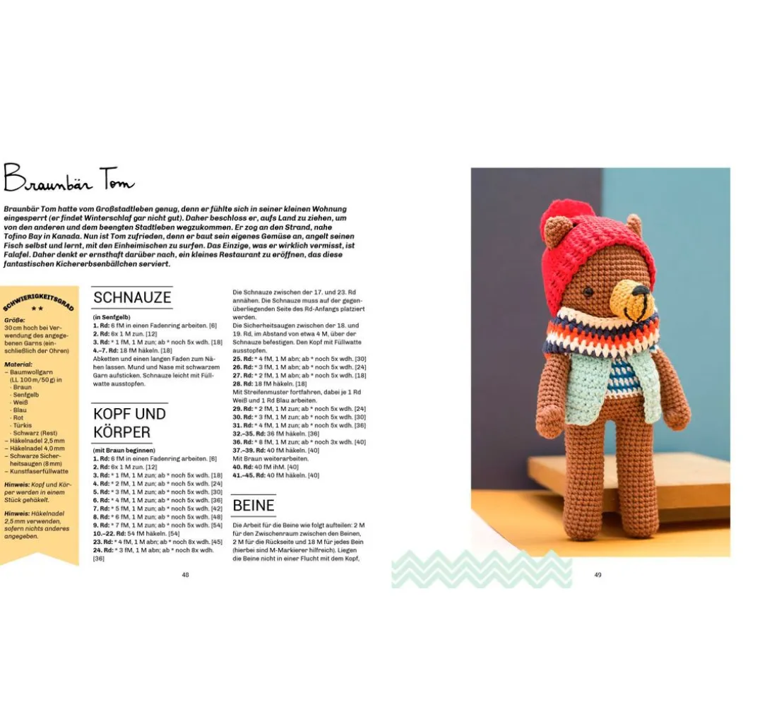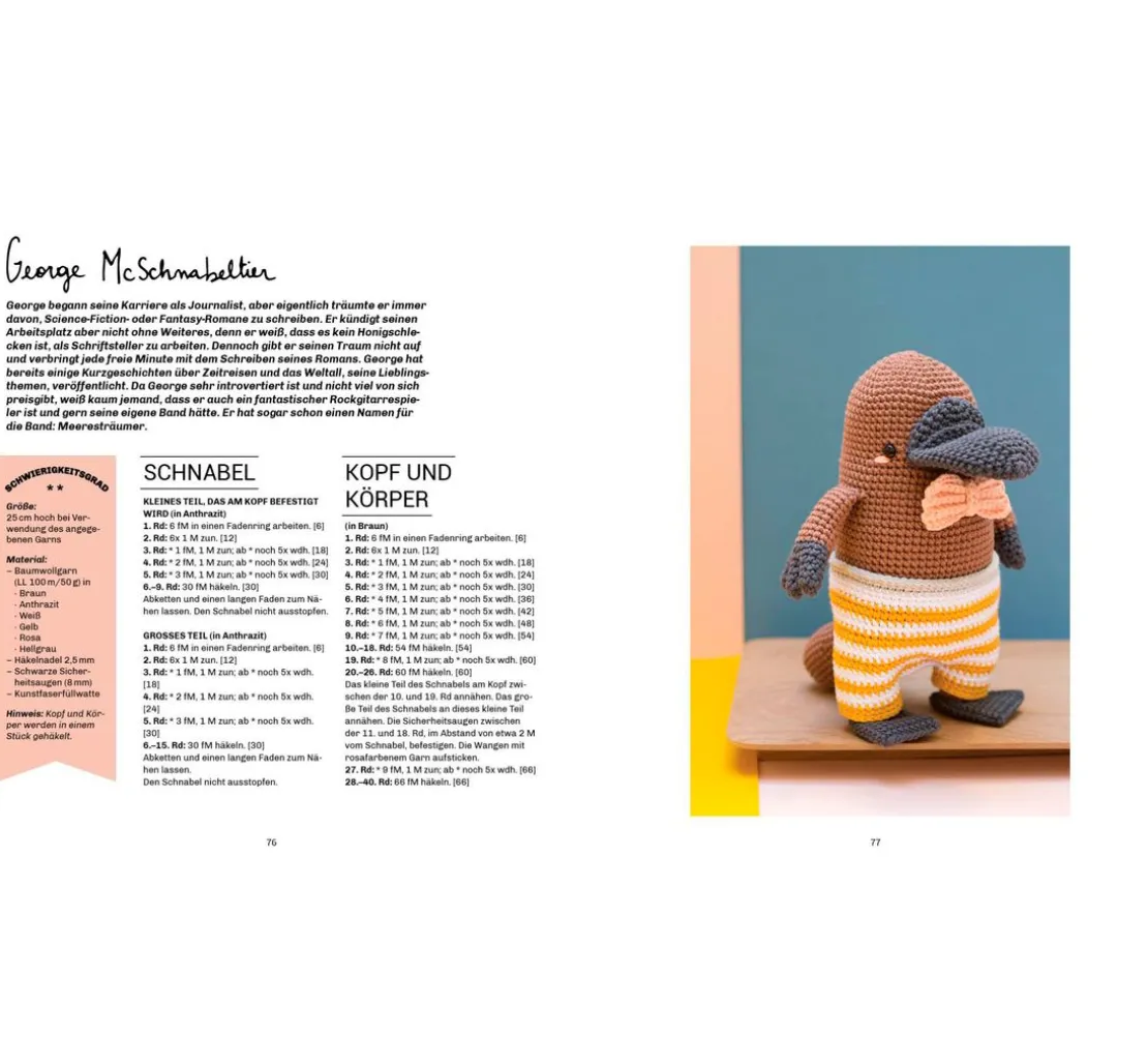 Lass deiner Kreativität freien Lauf und häkle Figuren wie Biene Agatha, Pia Panda oder George McSchnabeltier. Dank der detaillierten Anleitungen und Schritt-für-Schritt-Fotos sind diese Projekte sowohl für Anfänger*innen als auch für erfahrene Häkler*innen geeignet. Jeder Charakter erzählt seine eigene Geschichte, untermalt mit niedlichen Accessoires wie Mützchen und Schals, die den Figuren einen ganz besonderen Charme verleihen.