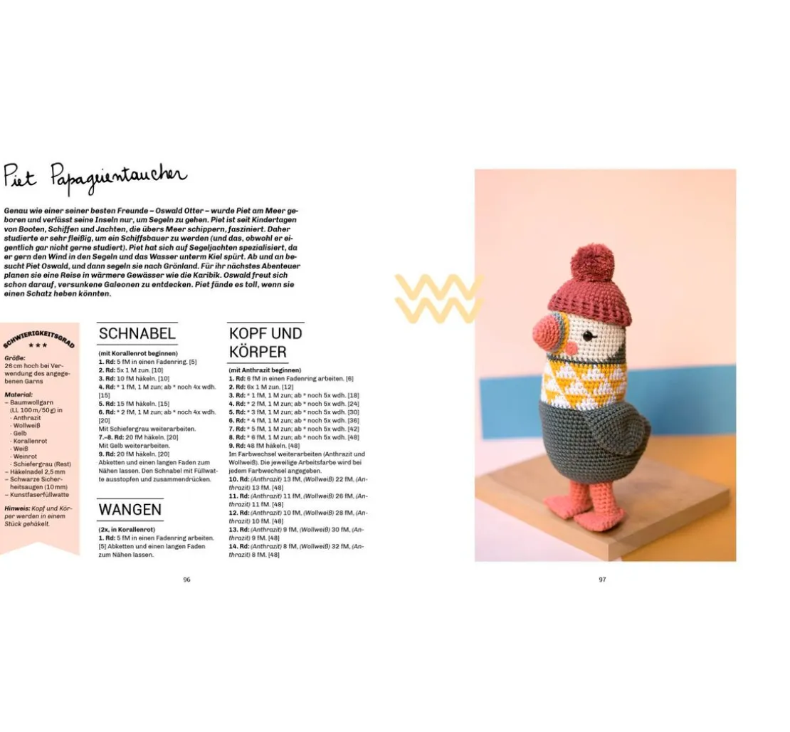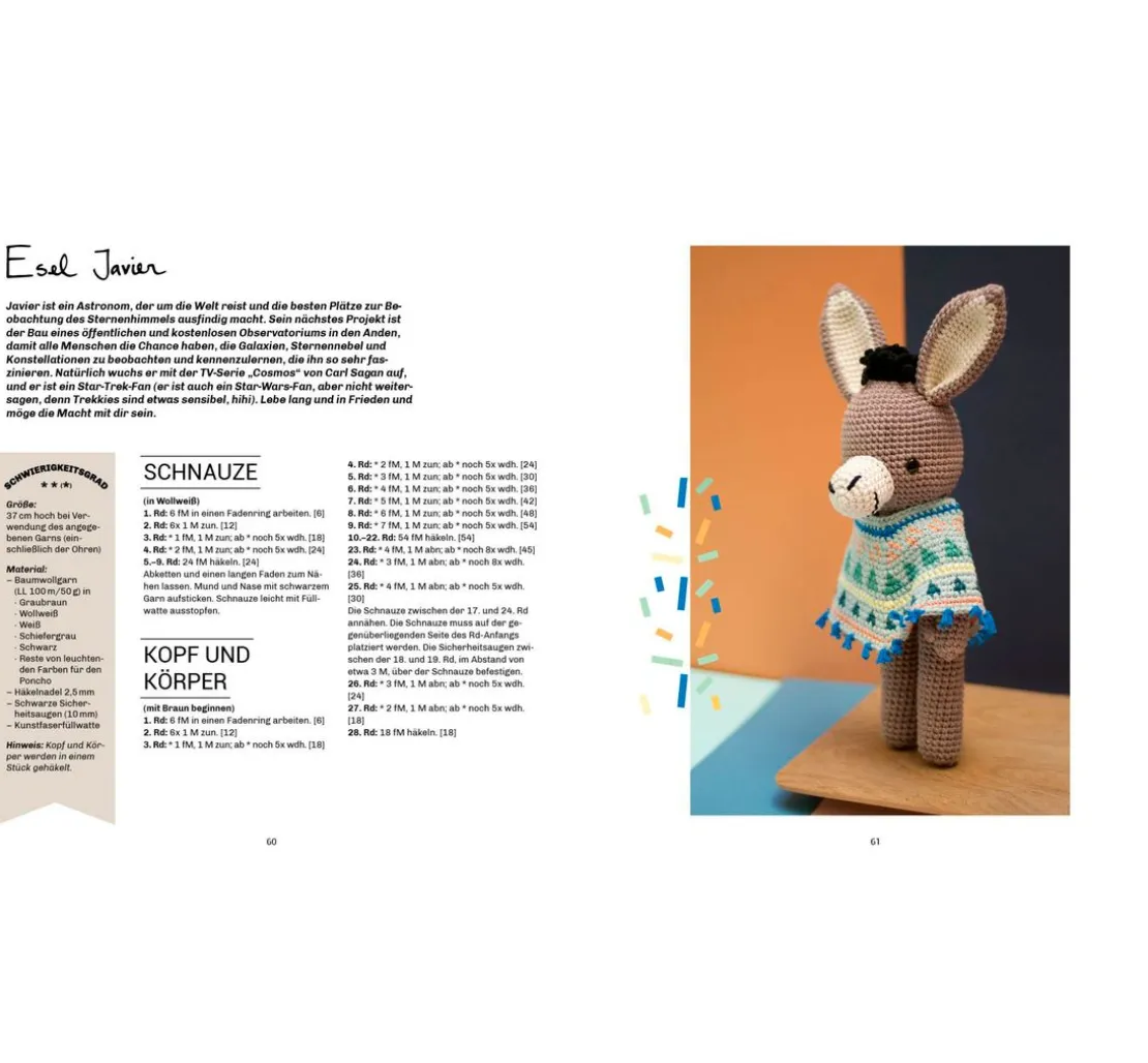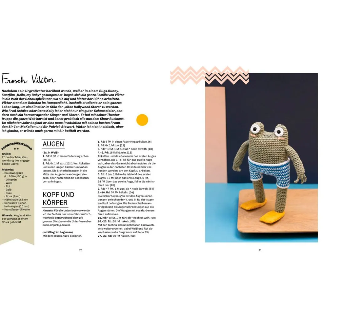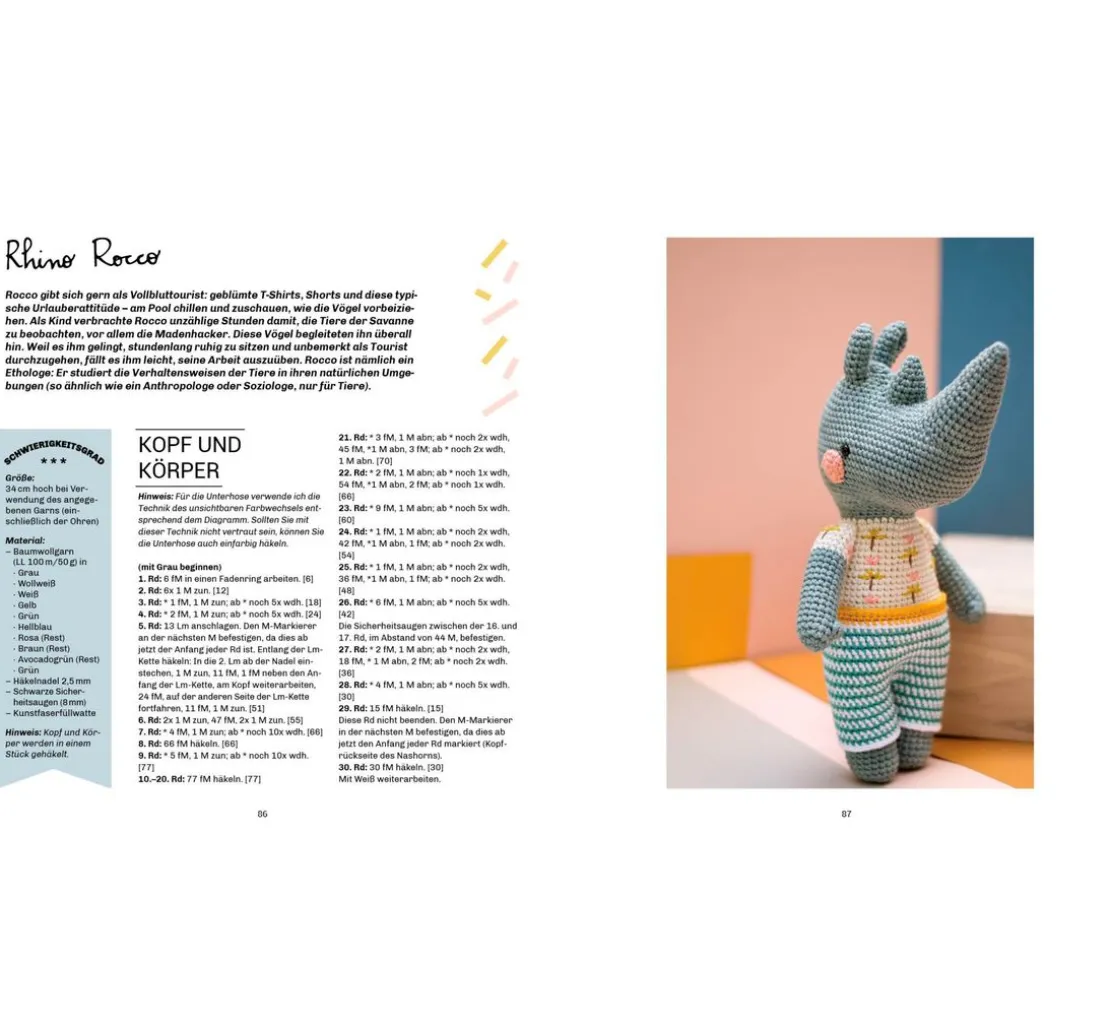 Lass deiner Kreativität freien Lauf und häkle Figuren wie Biene Agatha, Pia Panda oder George McSchnabeltier. Dank der detaillierten Anleitungen und Schritt-für-Schritt-Fotos sind diese Projekte sowohl für Anfänger*innen als auch für erfahrene Häkler*innen geeignet. Jeder Charakter erzählt seine eigene Geschichte, untermalt mit niedlichen Accessoires wie Mützchen und Schals, die den Figuren einen ganz besonderen Charme verleihen.