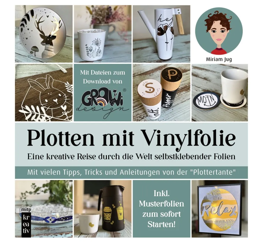 Entdecke die kreative Welt des Plottens mit Vinylfolie und lass dich von der „Plottertante“ Miriam Jug inspirieren! In ihrem Buch „Plotten mit Vinylfolie“ teilt sie ihre wertvollen Tipps, Tricks und Anleitungen für die Arbeit mit selbstklebenden Folien.