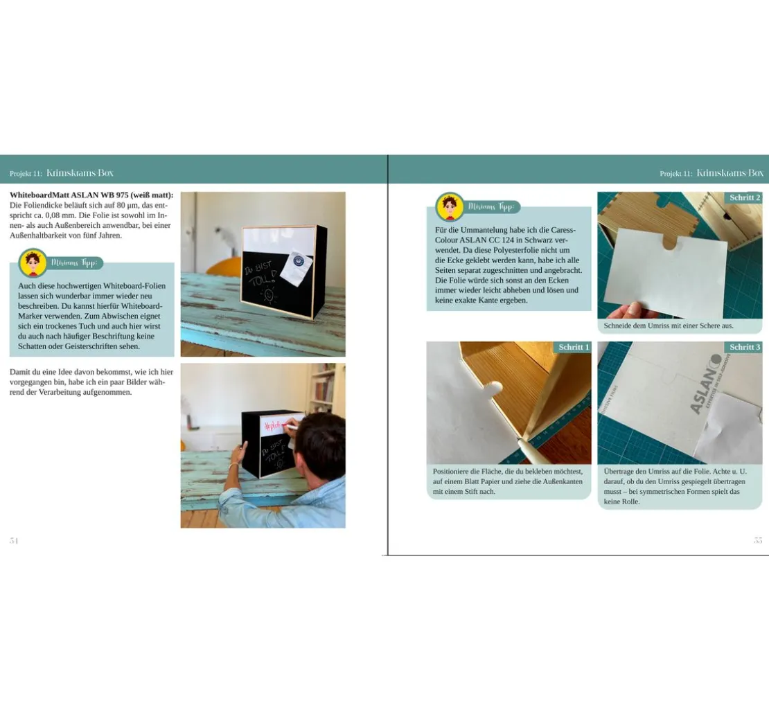 Mit diesem Buch erhältst du alles Wissenswerte rund um das Thema Plotten mit Vinylfolie und kannst direkt loslegen – inklusive kostenloser Vorlagen von GroWidesign zum Download und Musterfolien von ASLAN.
