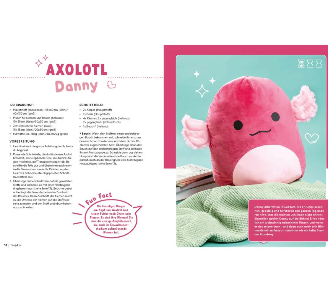 Entdecke die Magie des Nähens mit „So squishy nähen“ und kreiere deine eigenen weichen Begleiter! Dieses Buch ist dein Schlüssel zu kuschelweichen Squishys, die so individuell sind wie du. Ob du dich für ein niedliches Einhorn, eine Avocado oder ein Axolotl entscheidest, jedes Modell bietet grenzenlose Möglichkeiten zur Personalisierung.