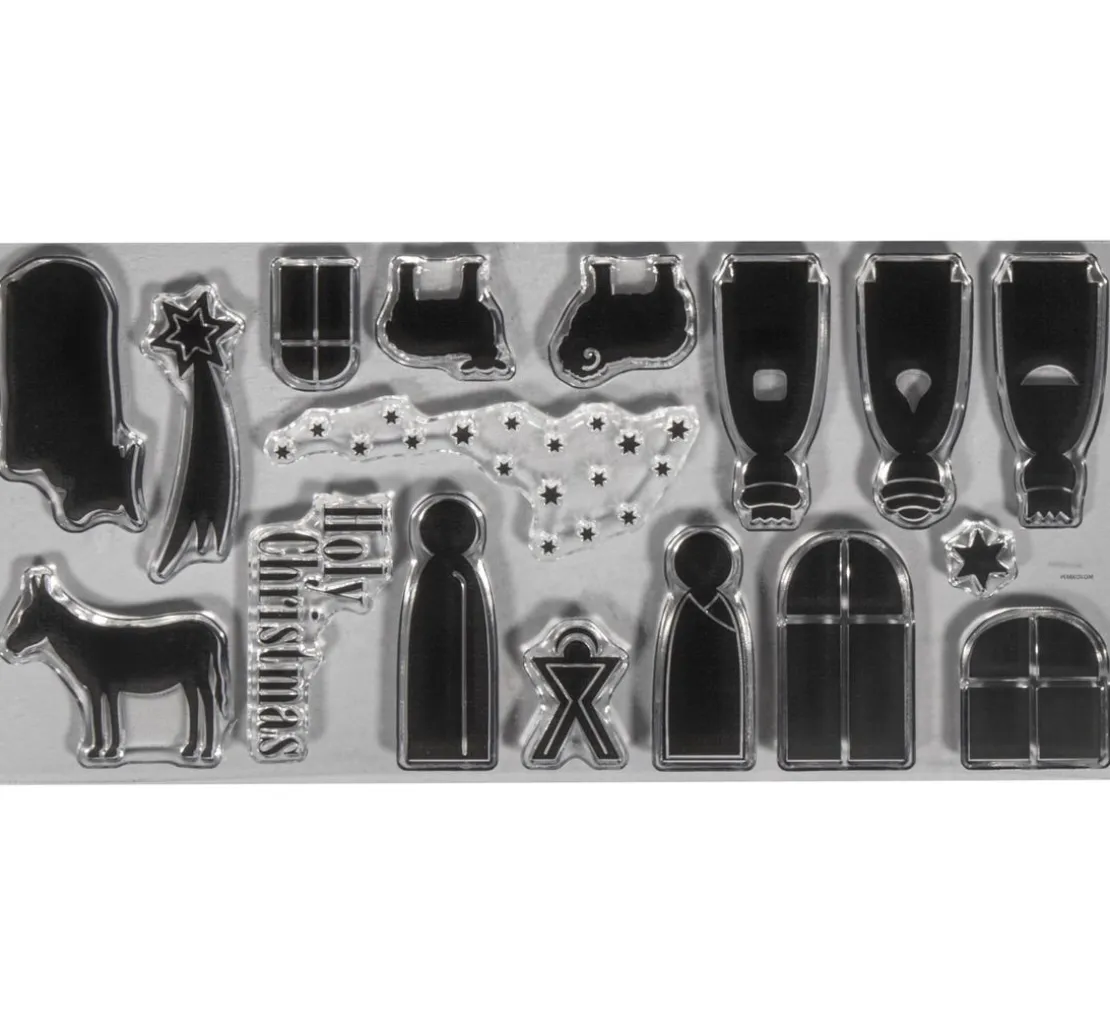 Mit den Clear Stamps „Krippe“ kannst du weihnachtliche Bastelprojekte ganz einfach und schnell gestalten. Der Set enthält 17 Stempel aus Silikon, die Motive sind zwischen 0,2 x 0,2 cm und 4,7 x 2,4 cm groß.