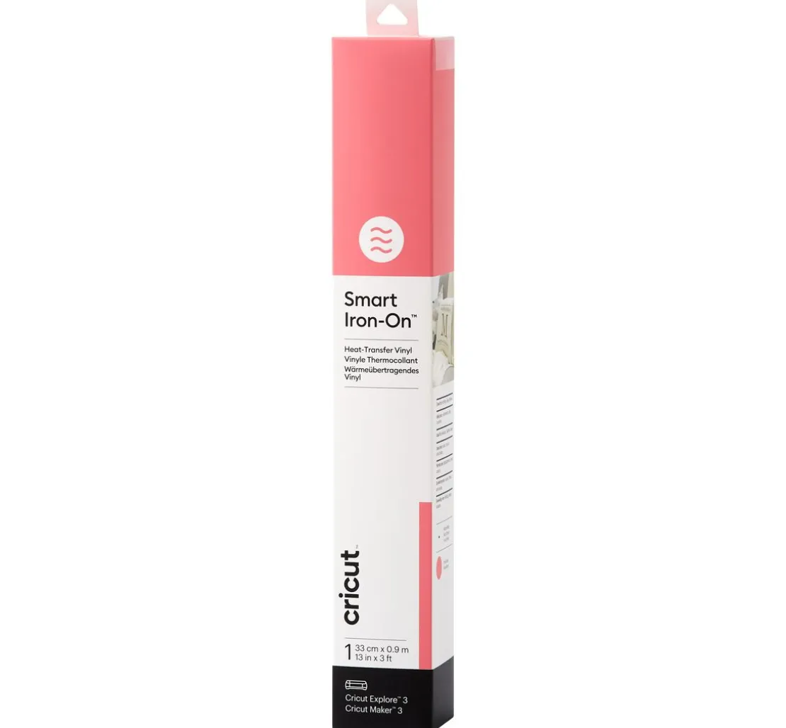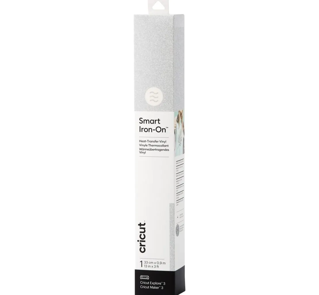 Diese Cricut Aufbügelfolie „Smart Iron-on“ lädt zum Kreativ werden ein, um individuelle Kreativarbeiten zu gestalten. Die Bügelfolie hat eine Breite von ca. 33 cm und ist ca. 90 cm lang.