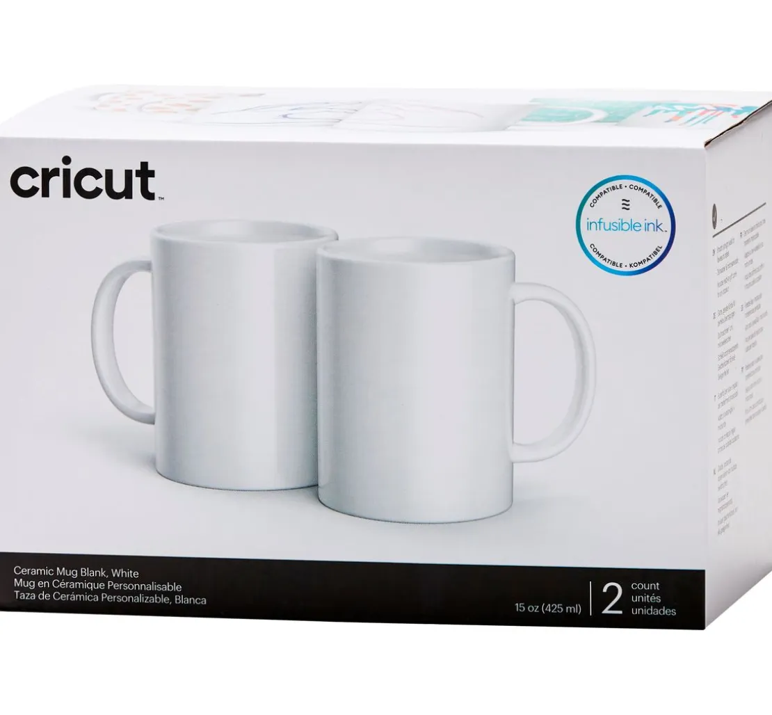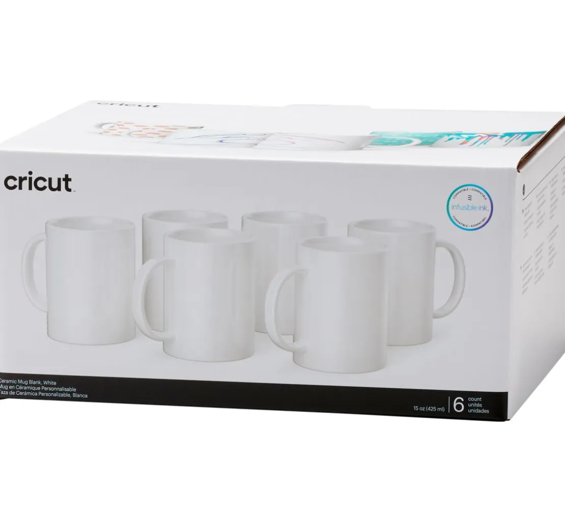 Die Cricut Tassen „Mug White“ haben eine Füllmenge von 425 ml und eignen sich für die Herstellung professioneller Tassen unter Verwendung der Cricut Mug Press- und Infusible Ink-Produkte. Inklusive geschenkfertiger Boxen.