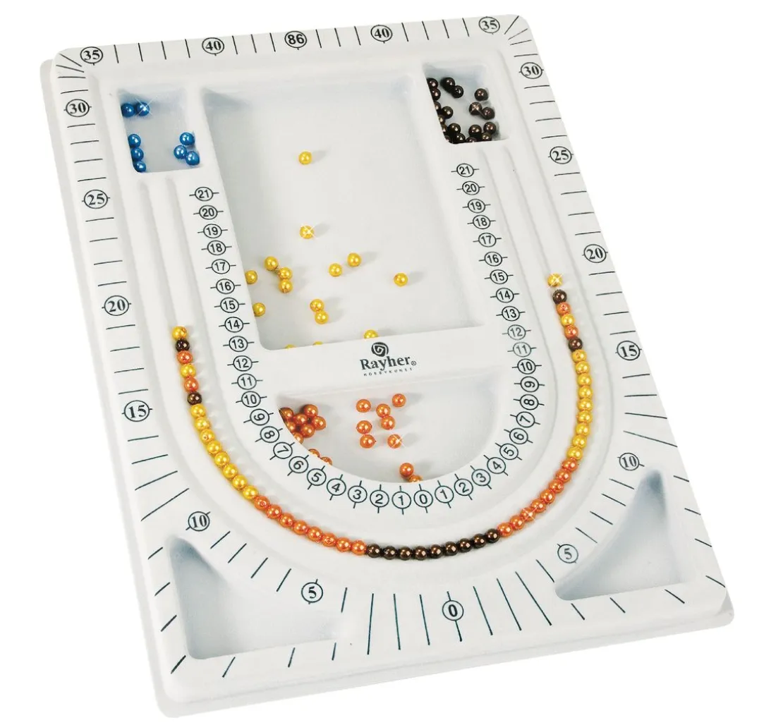 Verschönere deine Perlenketten mit der Design Platte für Perlen! Diese Platte macht das Kreieren von mehrreihigen Perlenketten ganz einfach und sorgt für ein einzigartiges Design. Mit einer Größe von ca. 33 cm Länge und ca. 23 cm Breite eignet sich die Platte perfekt für verschiedene Perlenarten.