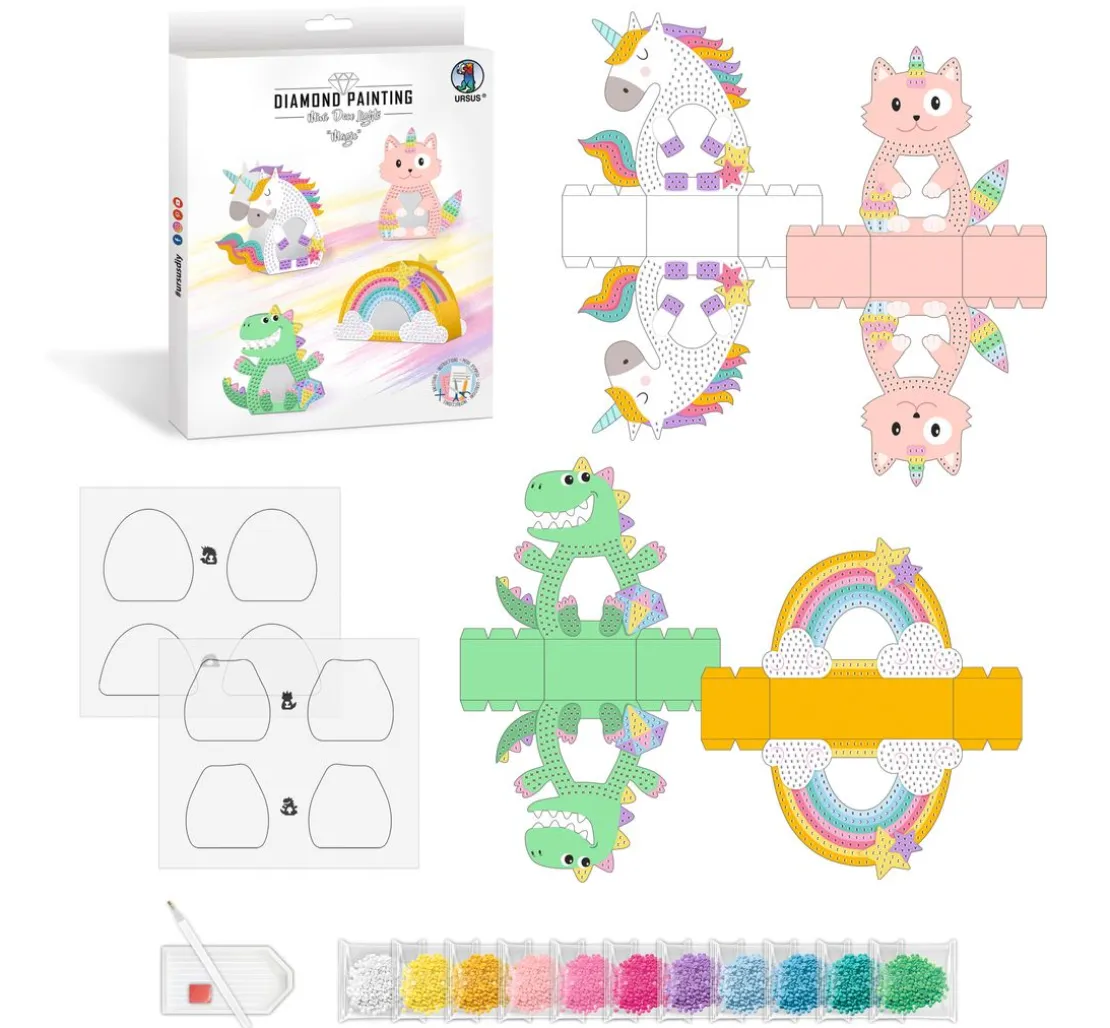 Verwandle dein Zuhause in ein funkelndes Paradies mit den Diamond Deko Lichtern! Diese 4 bezaubernden Mini Deko Lichter bieten dir die perfekte Gelegenheit, deine kreativen Fähigkeiten zu entfalten und gleichzeitig deine Wohnräume zu verschönern. Du erhältst ein Set, das alles beinhaltet, was du für dein kreatives Abenteuer brauchst: beidseitig bedruckte Lichter, transparente Stanzteile, farbenfrohe Diamantsteine und eine leicht verständliche Bastelanleitung.