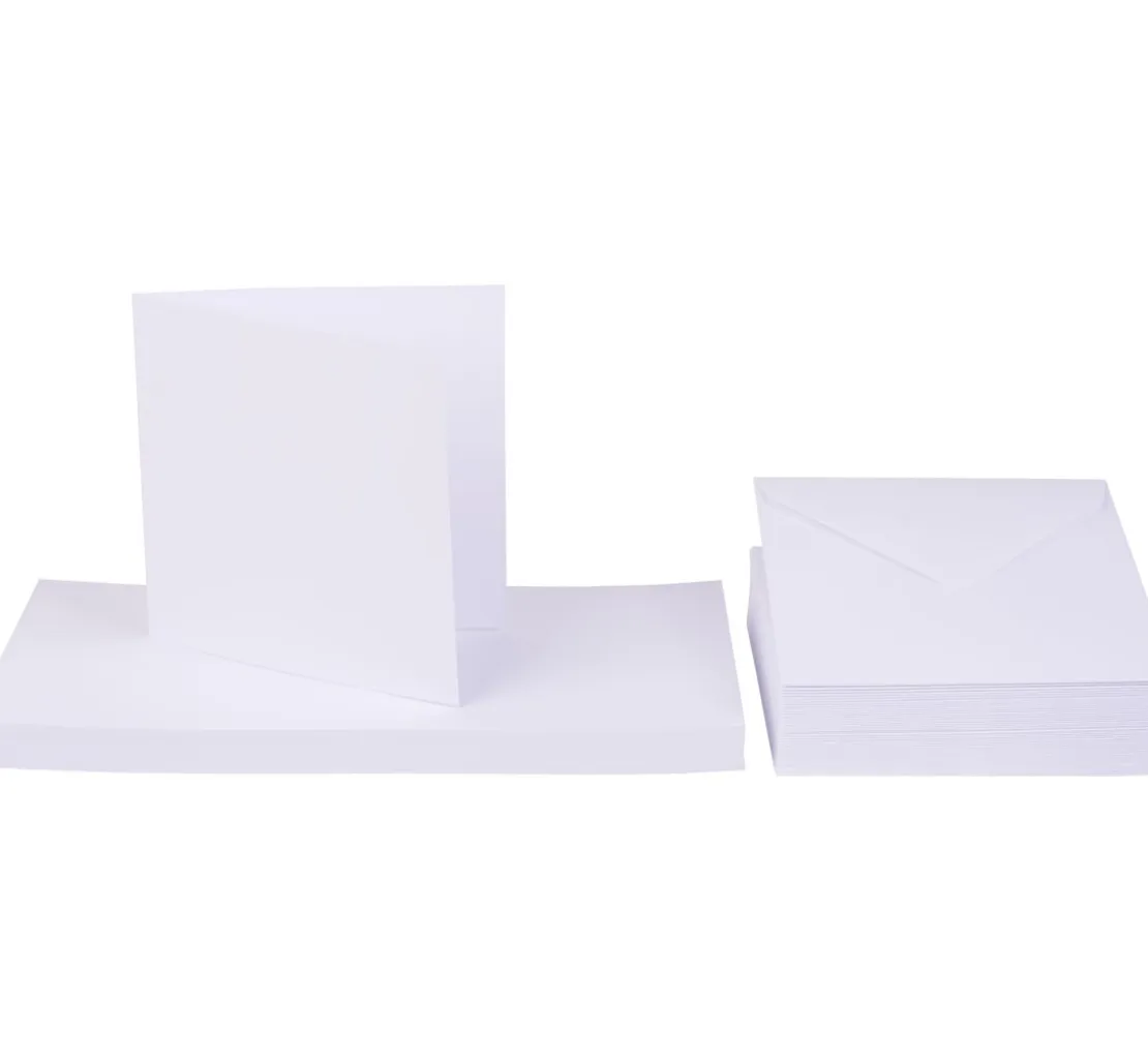 Enthalten sind 50 qualitativ hochwertige Doppelkarten mit einem Papiergewicht von 250 g/m² und 50 passende Umschläge. Die Karten sind ideal für die kreative Kartengestaltung mit Stickern, Farben, Motivpapier, Bändern, Stiften, Farben und vielem mehr geeignet.