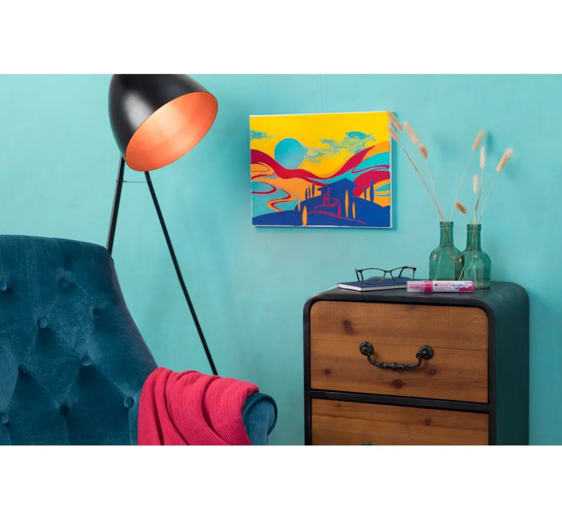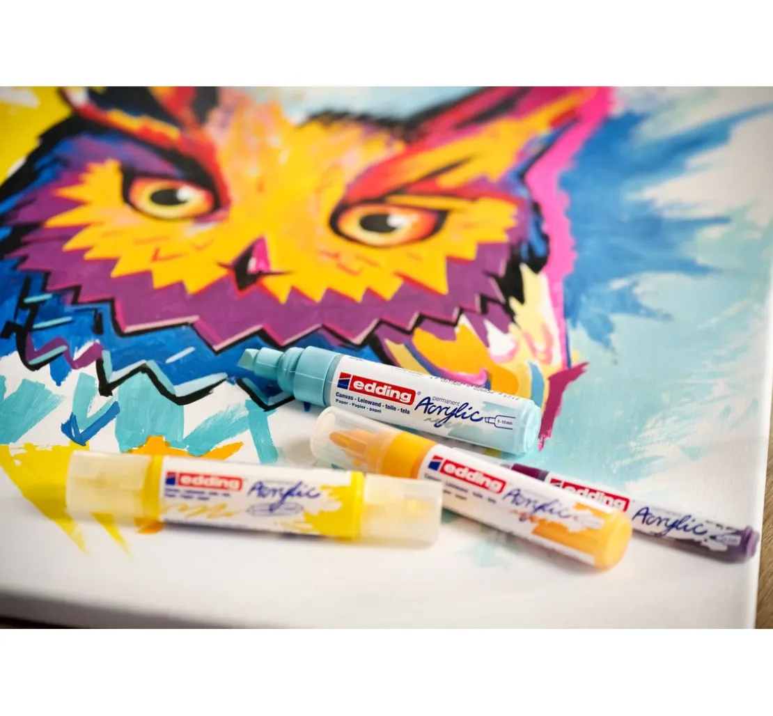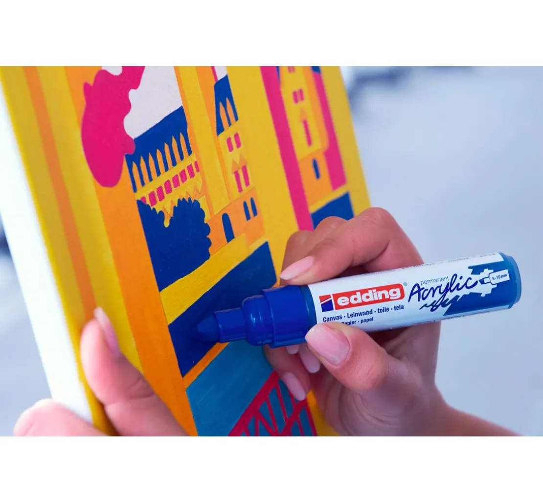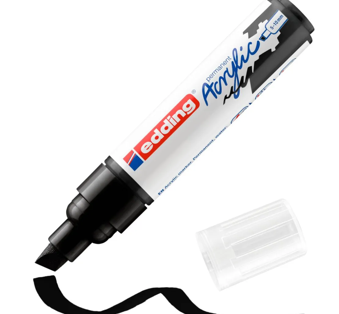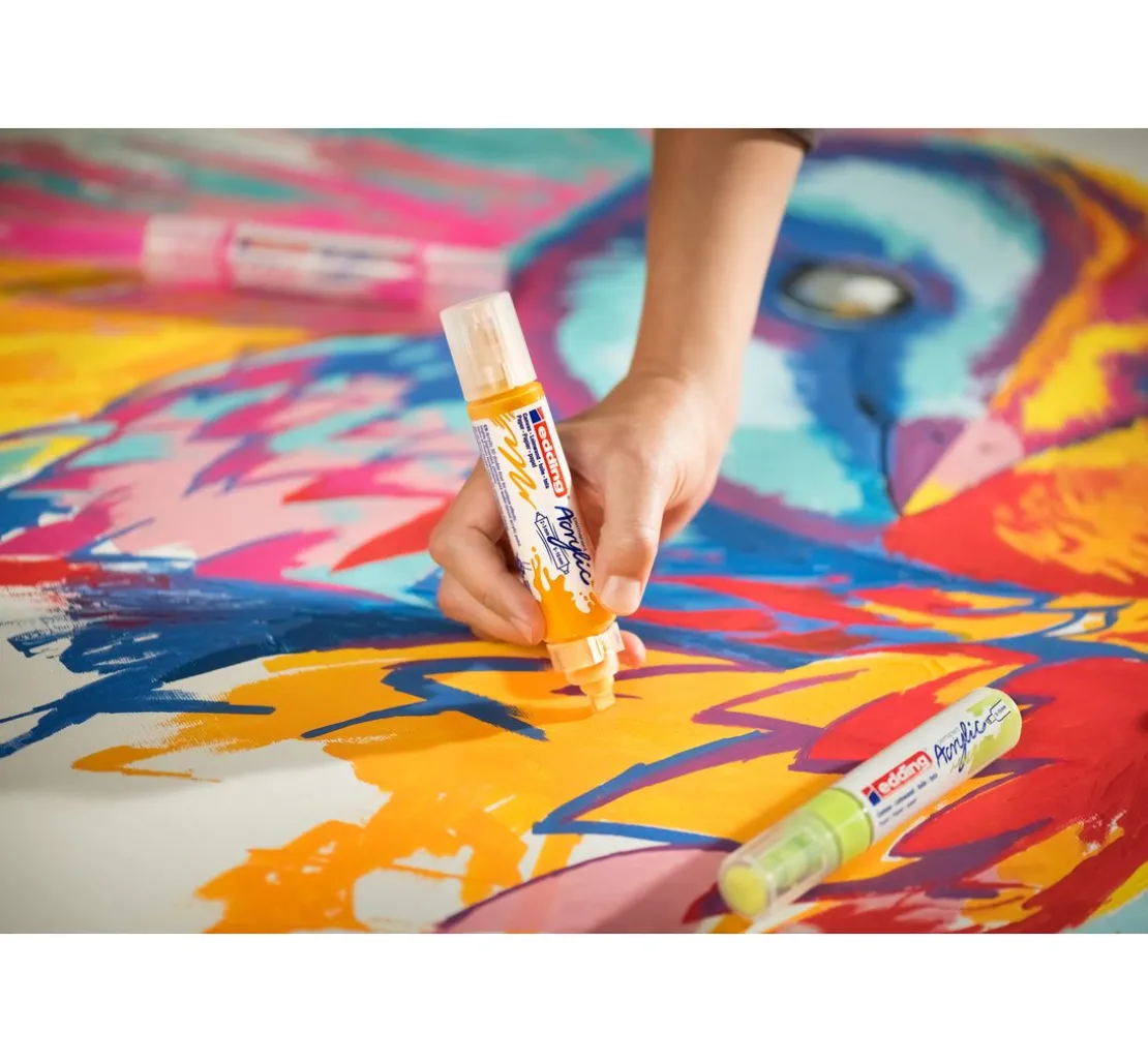 Der edding 5000 „Acrylmarker – Breit“ ist der variable Acrylmaler der Firma edding. Die Keilspitze hat eine Strichstärke von 5-10 mm und ist sowohl für flächigen als auch feinen Farbauftrag geeignet. Perfekt zum Malen auf Leinwänden und Papier.