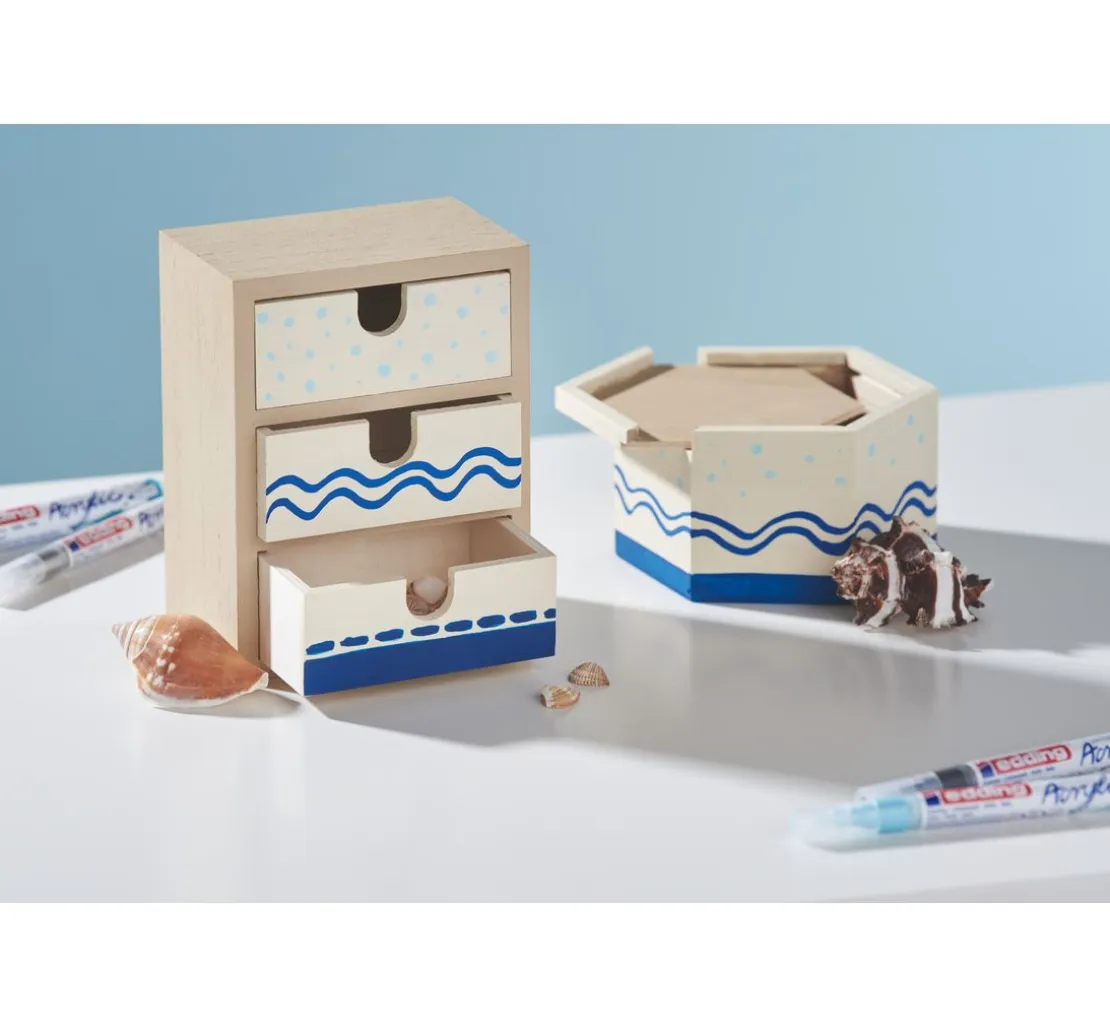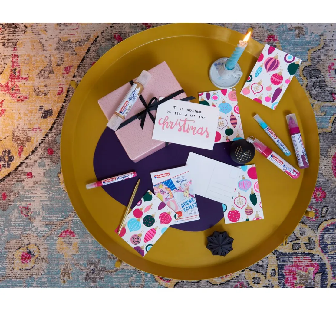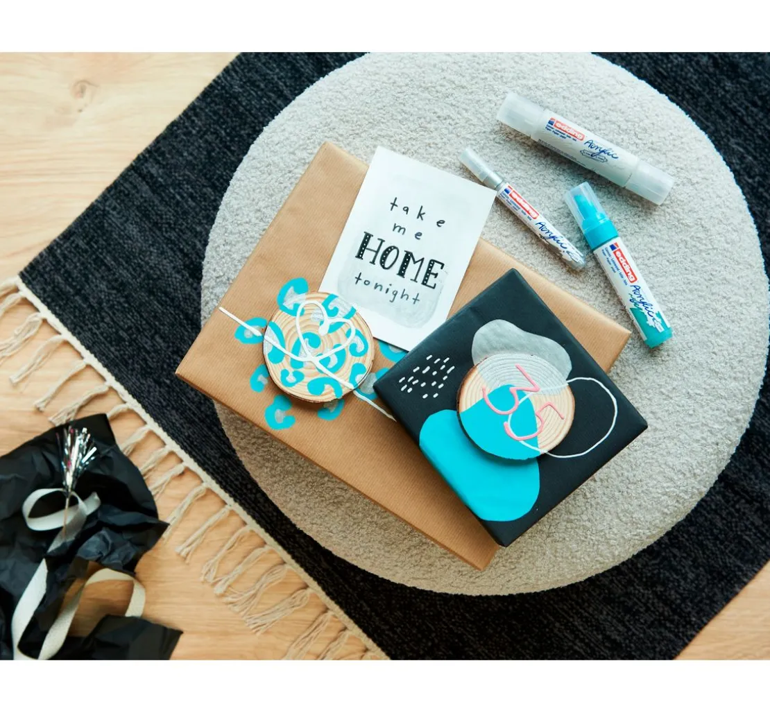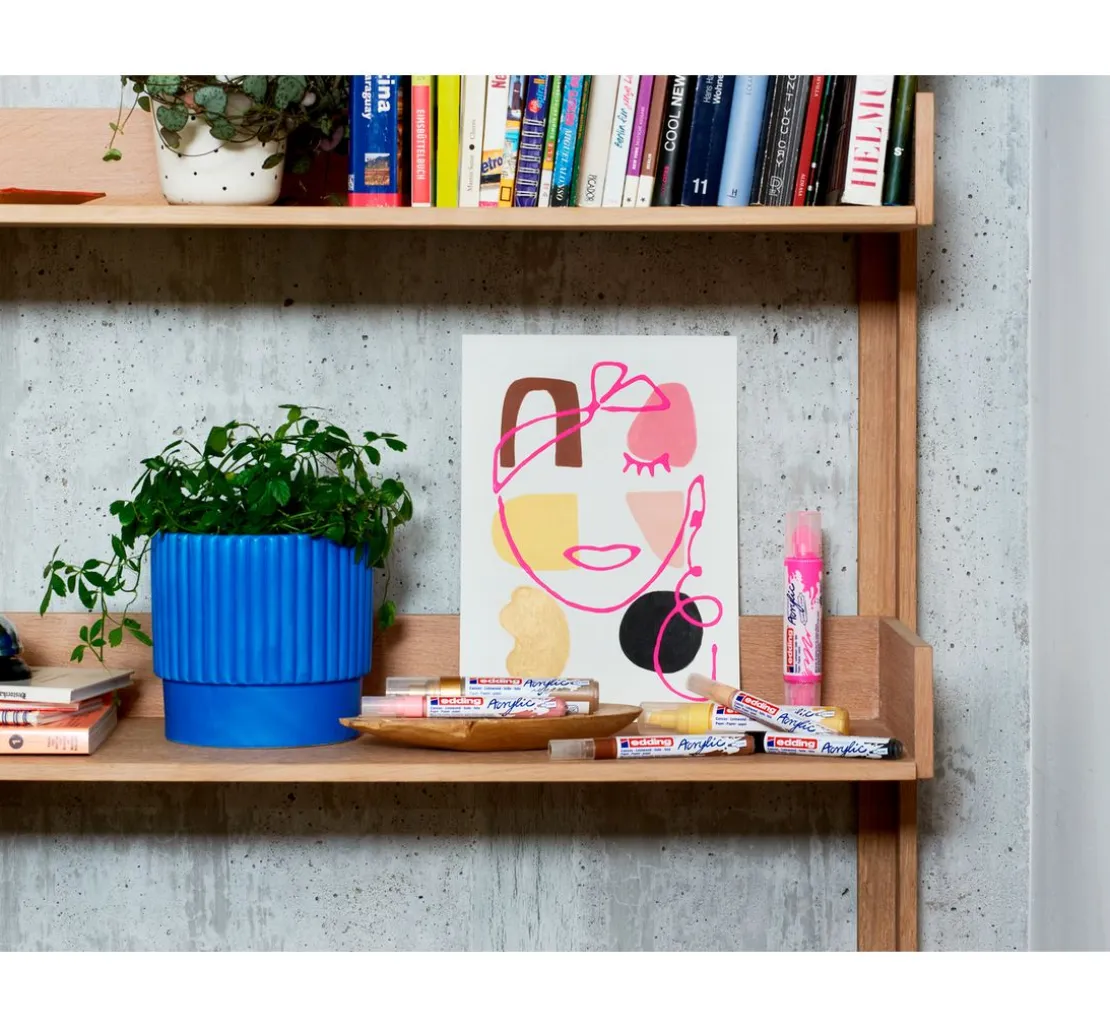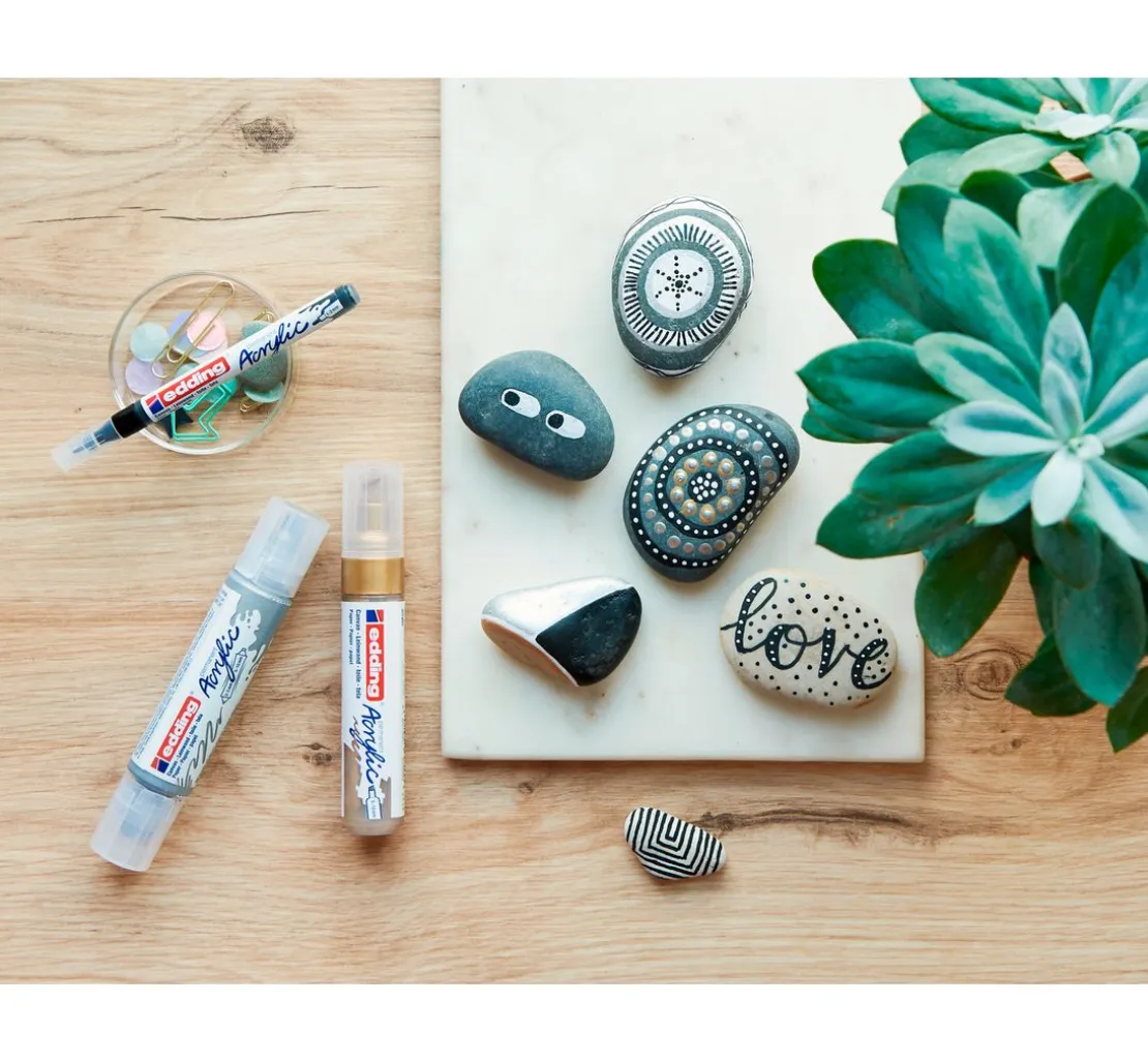 Verarbeitung: Die Acrylfarbe lässt sich gleichmäßig und in verschiedenen Strichbreiten perfekt auftragen. Kombinierbar mit dem edding Spray.