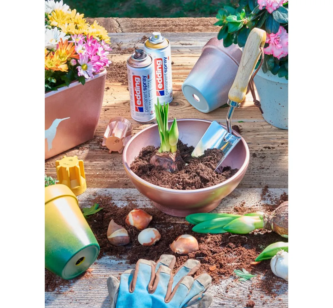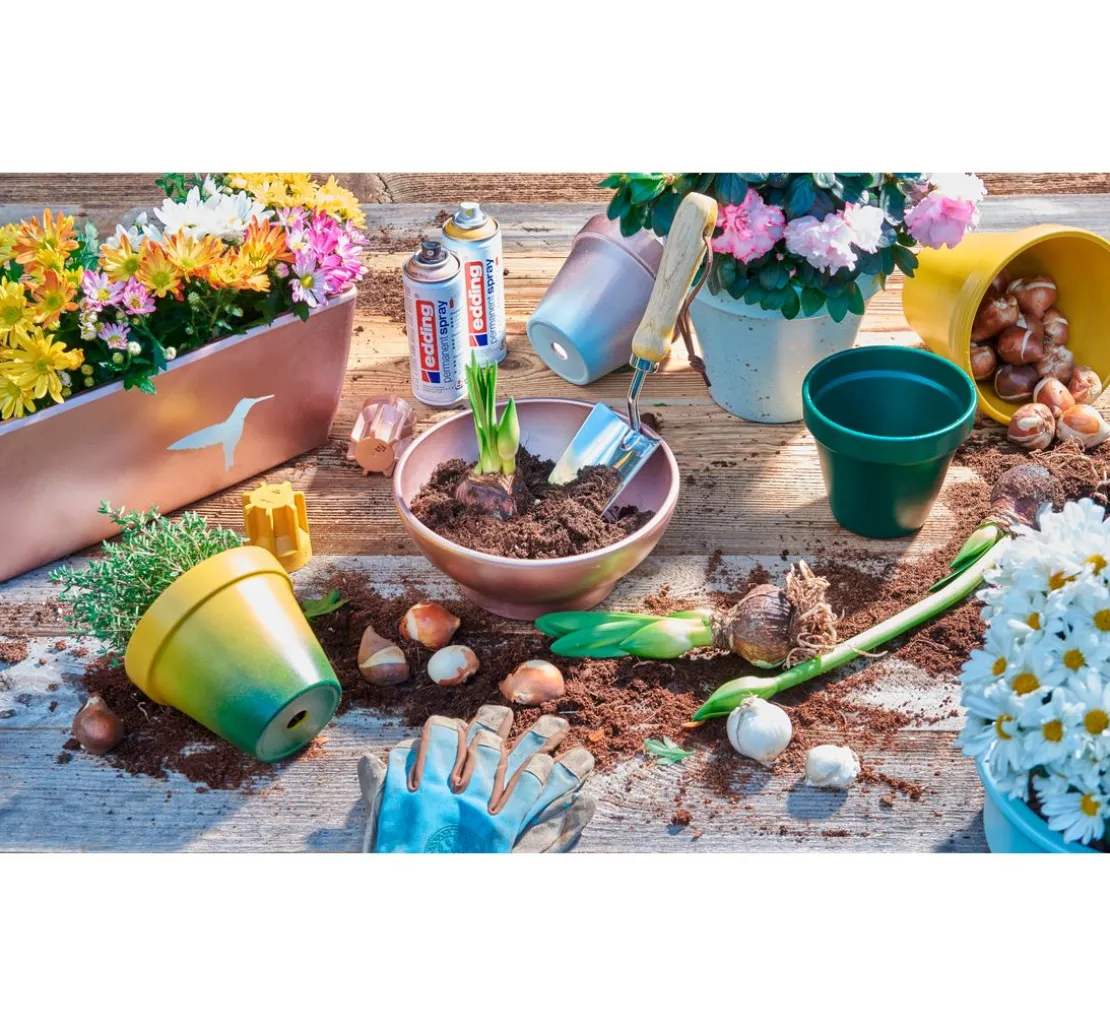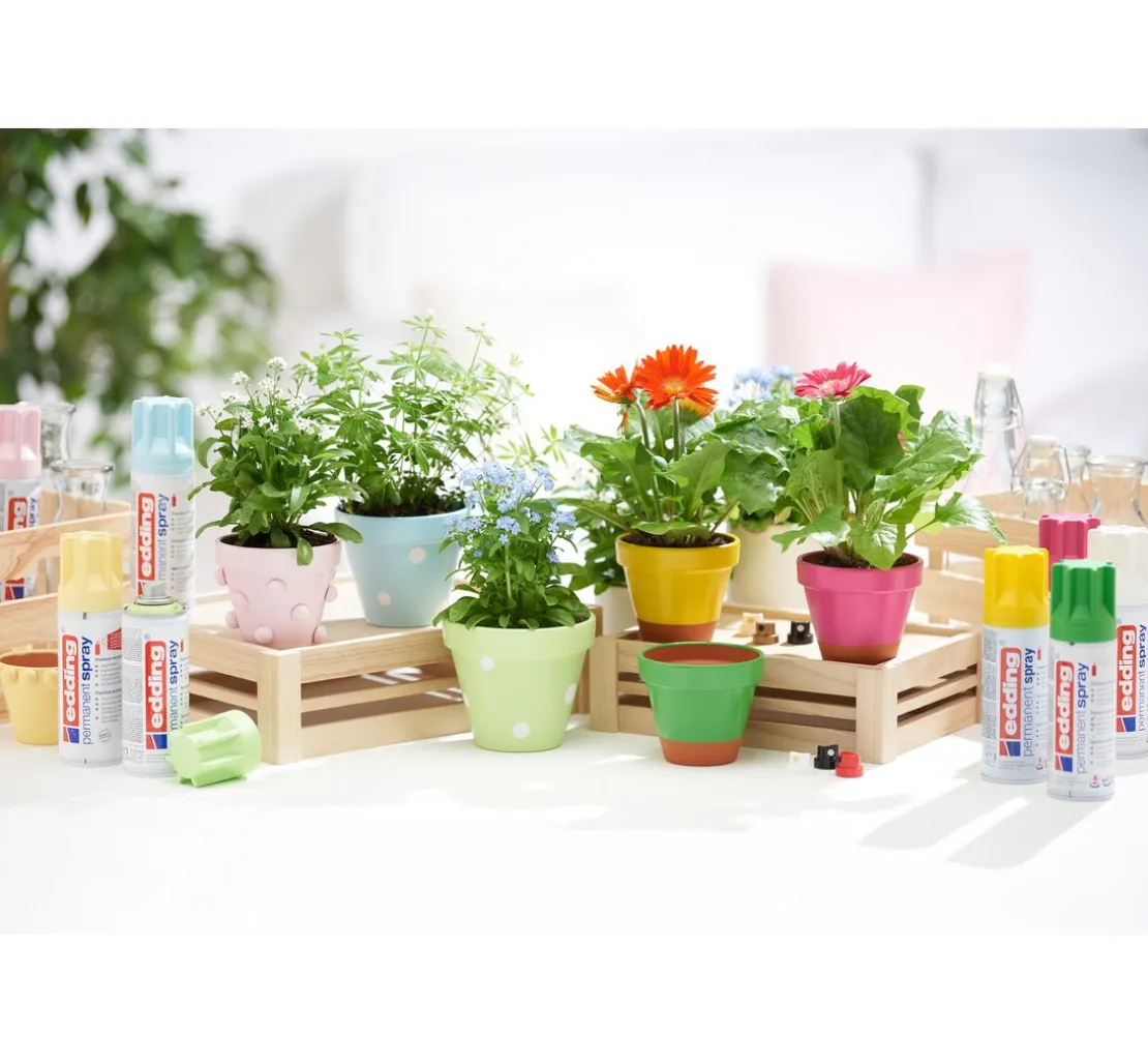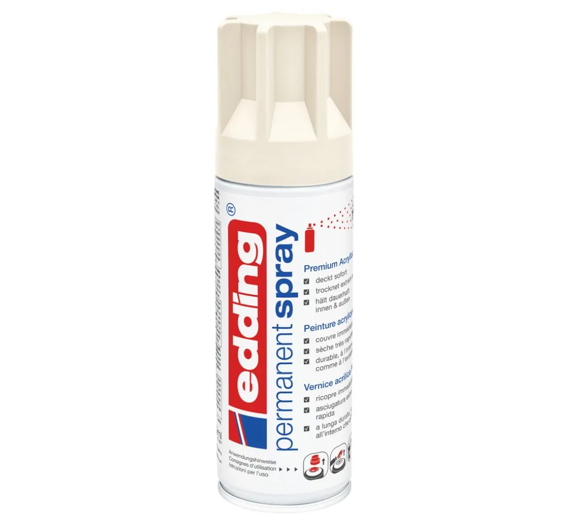 Die Premium-Sprühlacke von edding zeichnen sich durch eine außergewöhnlich hohe Deckkraft aus, trocknen extrem schnell und halten dauerhaft – drinnen wie draußen. Darüber hinaus ist dieses Spray doppelt so ergiebig wie herkömmliche Lacksprays.