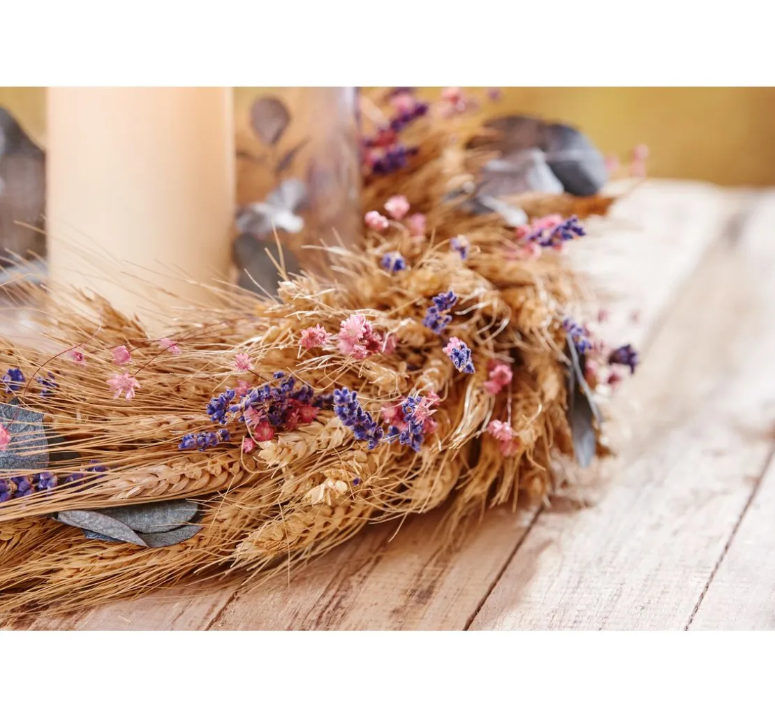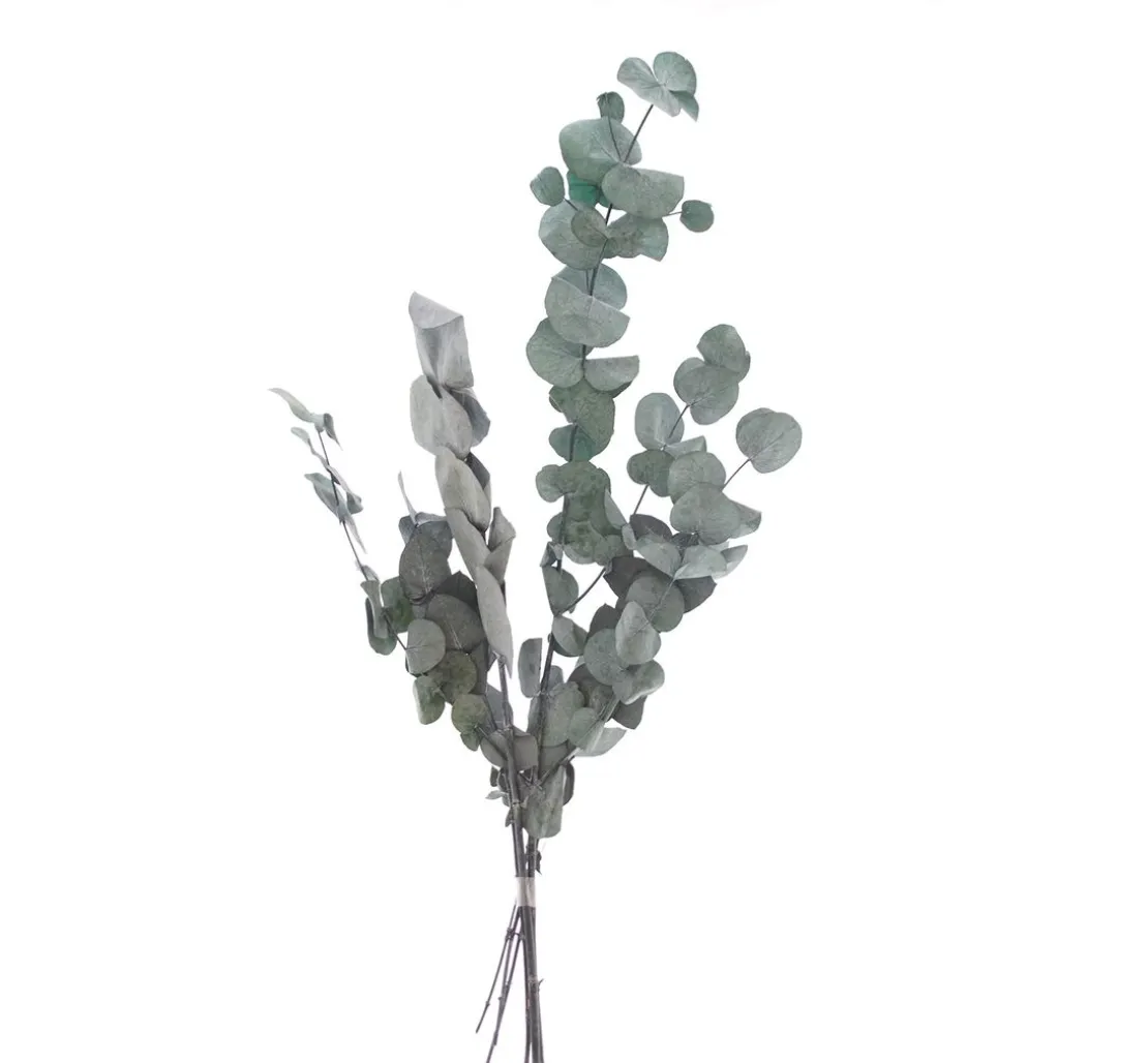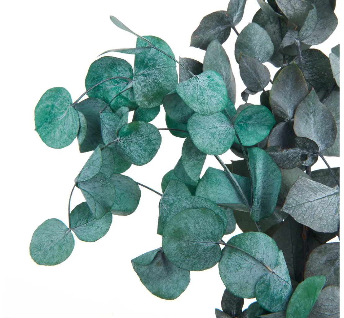 Eukalyptus ist aus der Gestaltung mit Trockenblumen nicht mehr wegzudenken. Er lässt sich wunderbar in bunte Sträuße integrieren, kann in Kränzen verarbeitet oder ganz modern für die Dekoration von Metallringen verwendet werden.