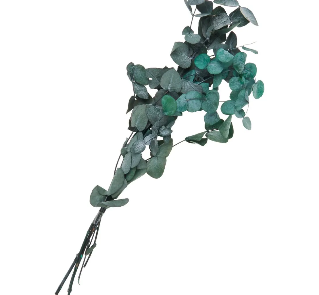 Üppiger Eukalyptus Cinerea mit einer Länge von ca. 30 – 65 cm. Je Bund sind ca. 50 g des präparierten Naturmaterials enthalten. Es ist nur für den Innenbereich geeignet und sollte vor direkter Sonneneinstrahlung geschützt werden.